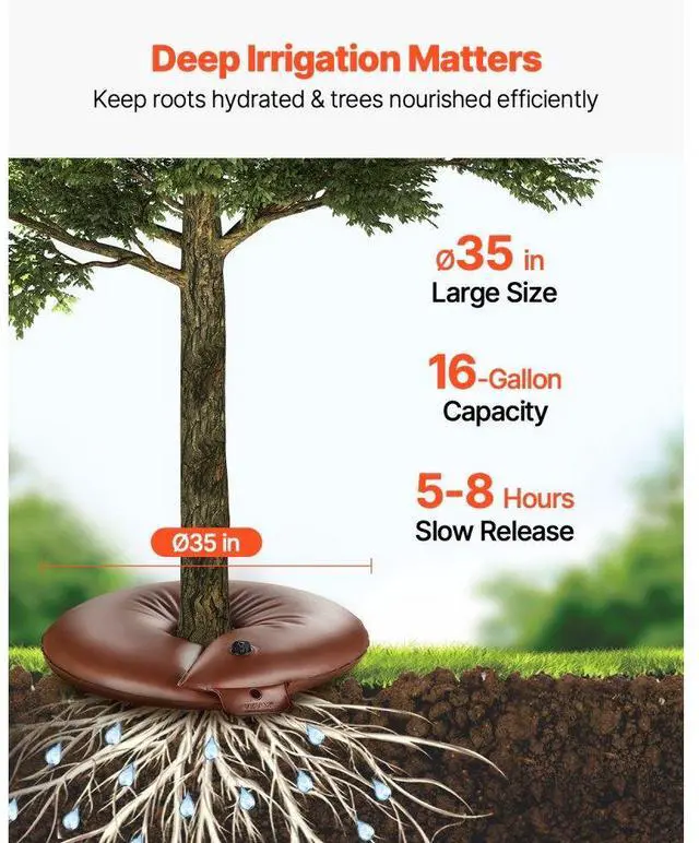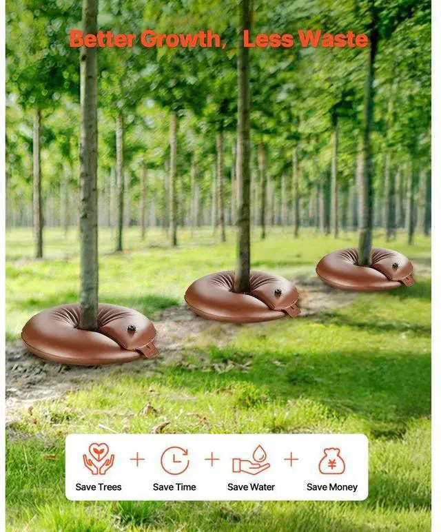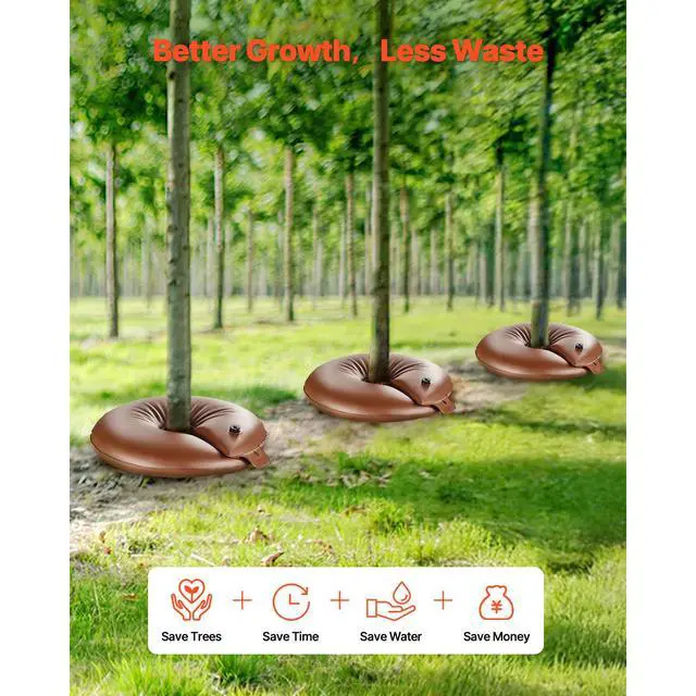 VEVOR Tree Watering Bags Slow Release, 4 Pack 16 Gallons Tree Watering Ring, Reusable Refillable Tree Irrigation Ring Water Bags, Heavy Duty Watering System for Shrub Tree Root Drip Irrigation Ideal for Drought Conditions Time-Saving & Water-Efficient Versatile Applications Easy to Use Enhanced User Experience Reusable