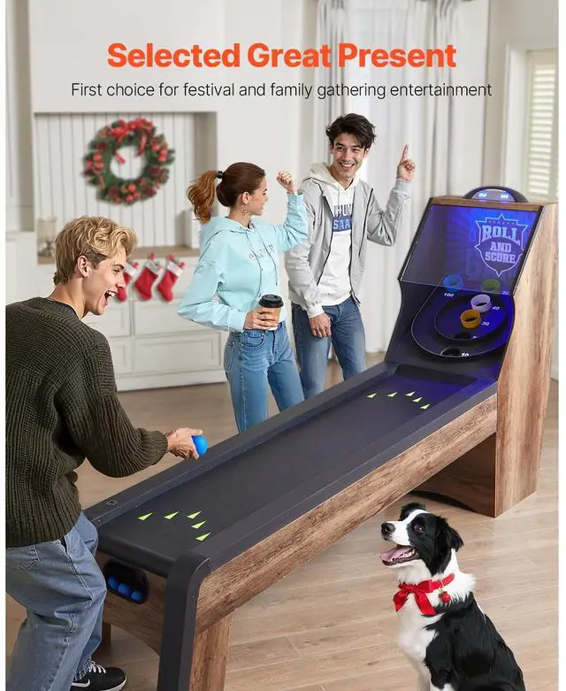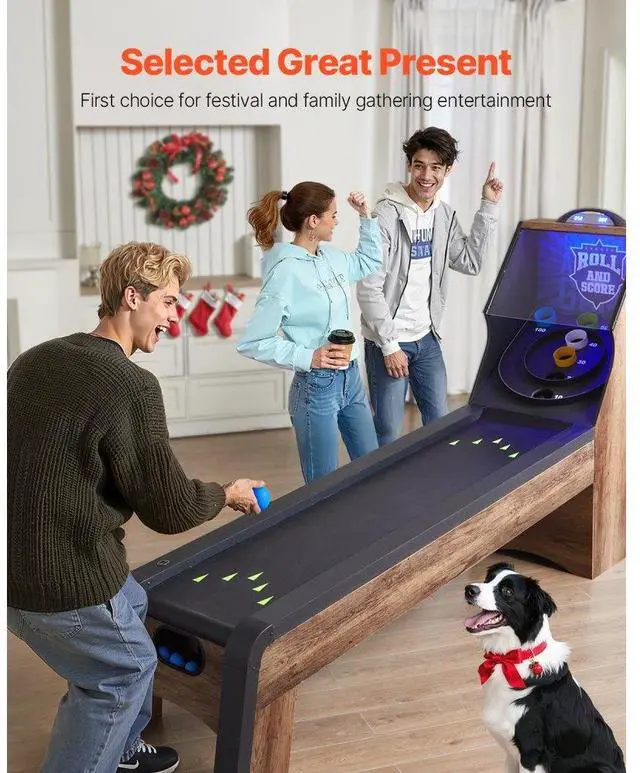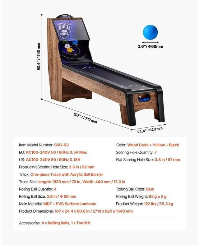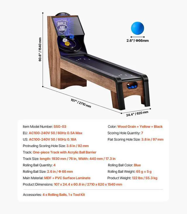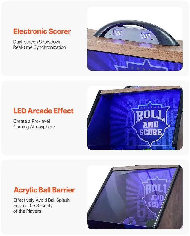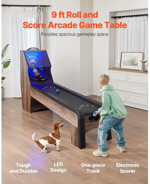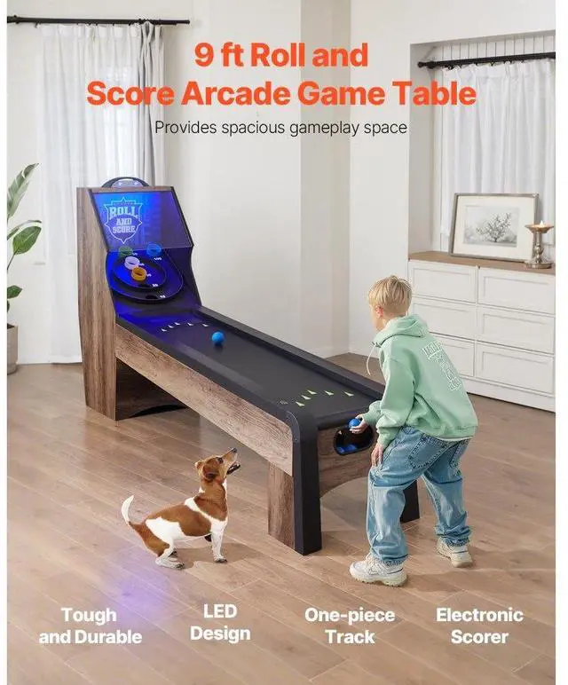 9 ft Roll & Score Arcade Game Table LED Electronic Scorer Home Game Room 4 Balls Great Present Realistic Sound Effects Electronic Scorer Arcade Sound Effects Immersive Game Atmosphere Highly Secure Packaging Flat Scoring