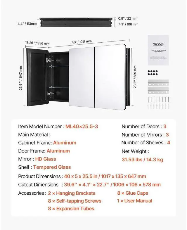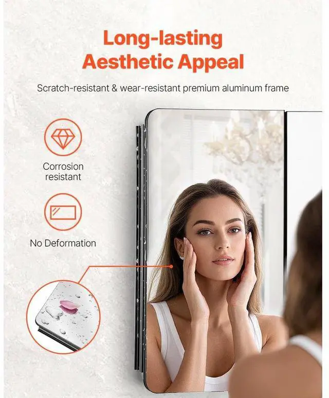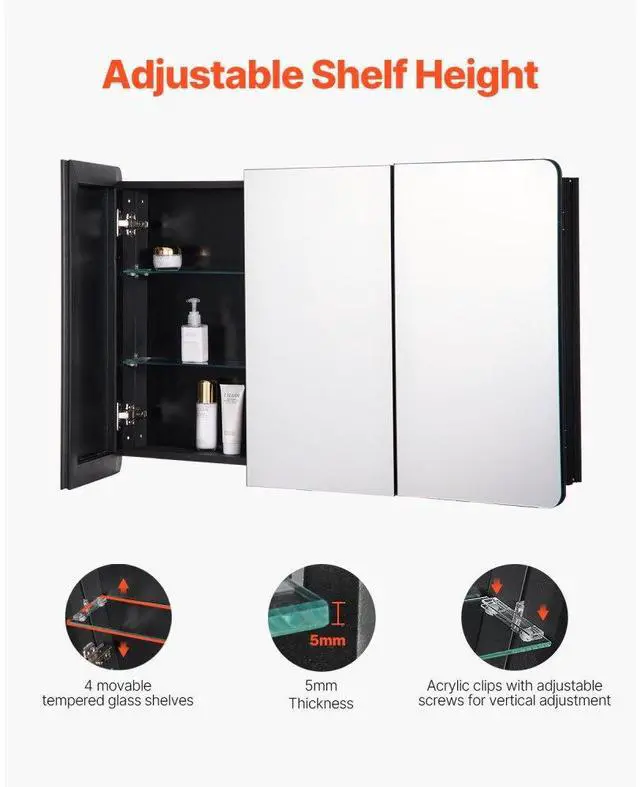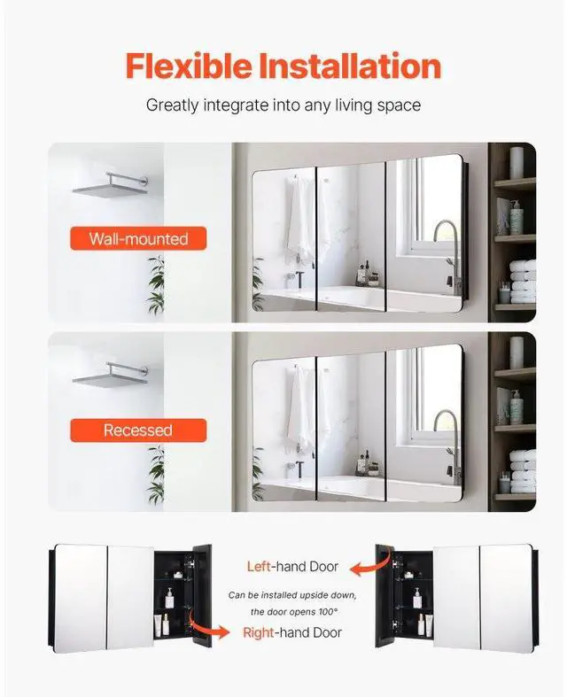 Medicine Cabinet 25.5" x 40" Mirror Medicine Cabinet Adjustable Shelves Multi-Functional Bathroom Medicine Cabinet Adjustable Shelves Built to Withstand Humidity Flexible Installation Thoughtful Design Triple Mirror Design Number of