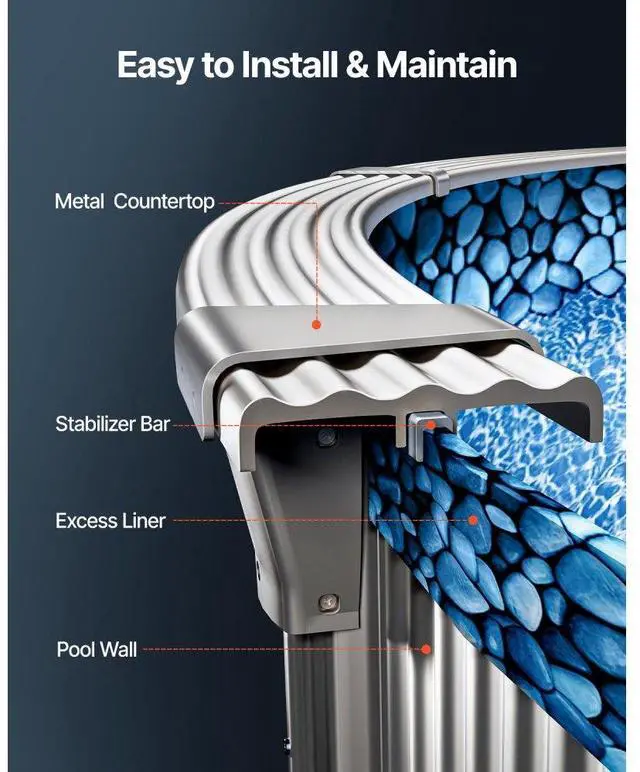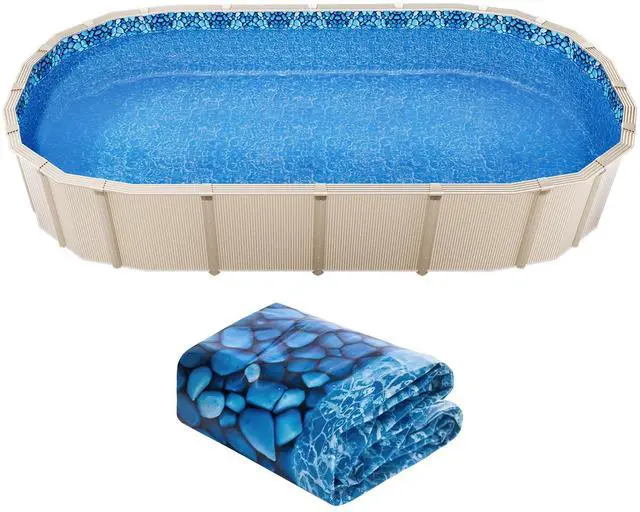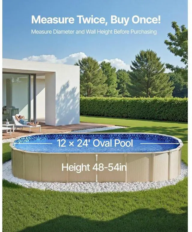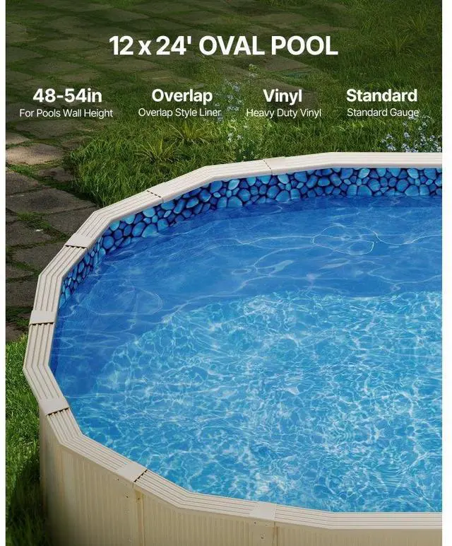 Oval Pool Liner 12x24ft Overlap Style Pool Liner 54in Wall Height Durable Beautiful Pattern Premium-Quality Vinyl Tear-Resistant Versatile Use Durable & Long-Lasting Material Multiple Sizes Available