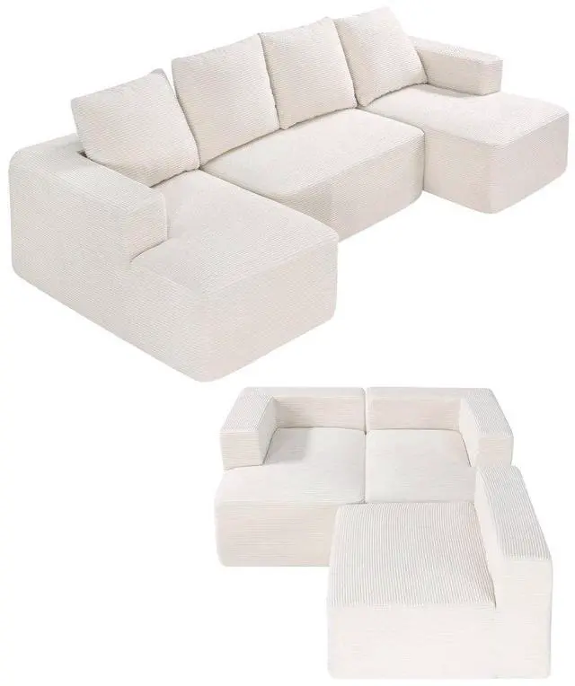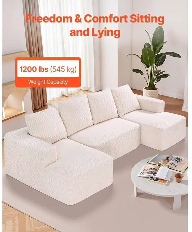 VEVOR Modular Sectional Sofa, U Shaped Couch, Sectional Sofa for Living Room, Cloud Couch with High Rebound Sponge with Cushion for Living Room, Apartment, Beige Modular Sofa Customizable Layout Wide Armrests Soft Corduroy Fabric No Assembly Needed Durable