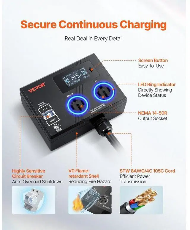 NEMA Splitter for Dryer and EV NEMA 14-50P 2x 14-50R 3.4 '' LCD Screen ETL Certification Fast Charging Smart Distribution Concise Design Cost-efficient Option High