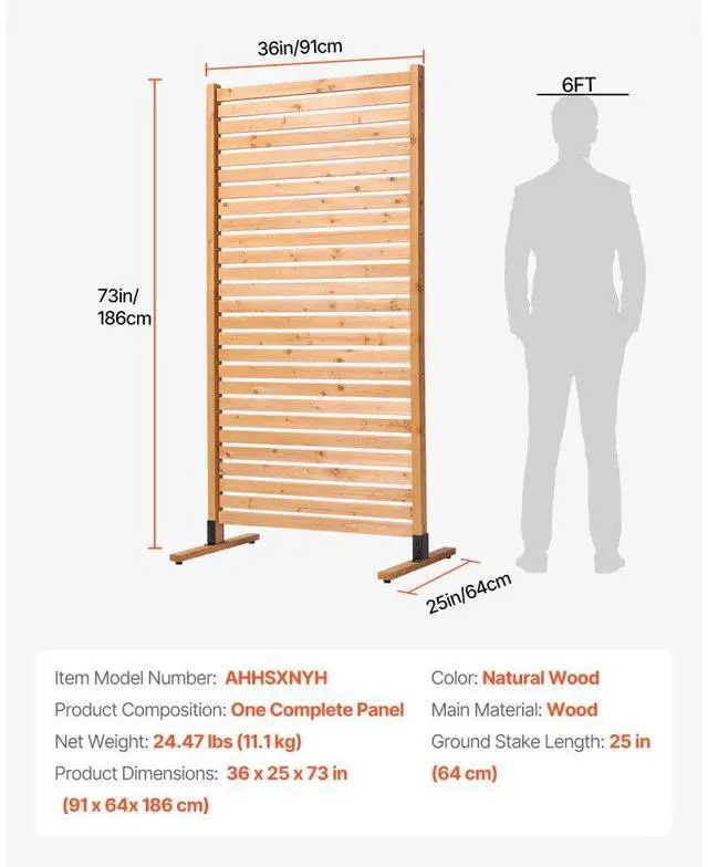 • Wooden Privacy Screen 36" x 76" Freestanding Outdoor Privacy Screen for Patio