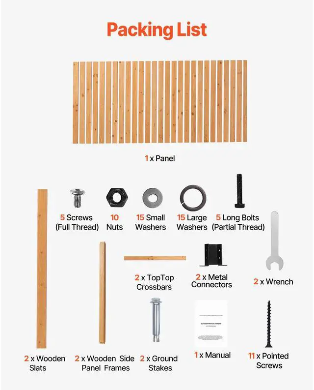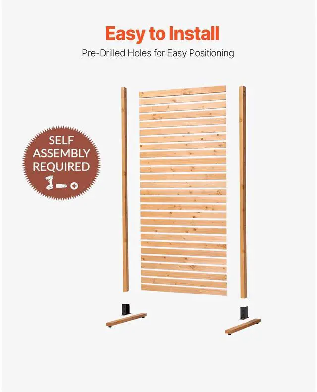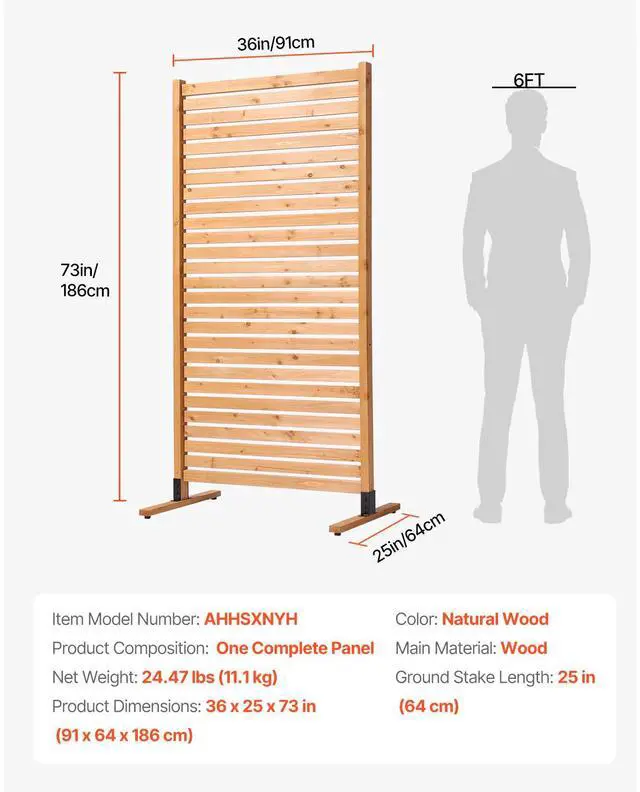 Wooden Privacy Screen 36" x 76" Freestanding Outdoor Privacy Screen for Patio Paintable Stainless Steel Bolts Sturdy Base Versatile for Various Settings Durable Material Multiple