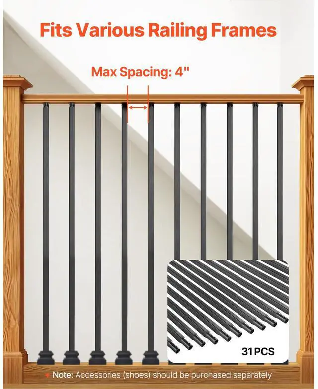 Staircase Balusters 31 Pack 44 Inch Carbon Steel Stair Balusters Indoor Spindle Cylindrical Head 1mm-Thickened Tubing Carbon Steel Meets Diverse Application Scenarios Stylish Apperance Cutting Made Easy Number of