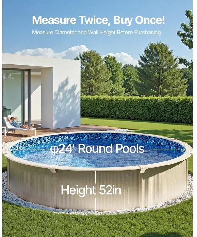 • Fit for 24ft Pools: Our pool liner is specially measured to fit 24-ft round pools with a flat bottom and wall height of up to 52 inches, ensuring an exact and secure fit for your pool.