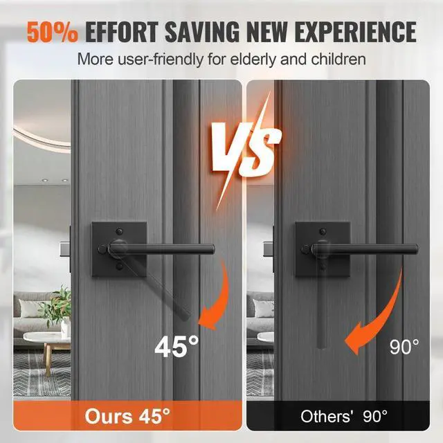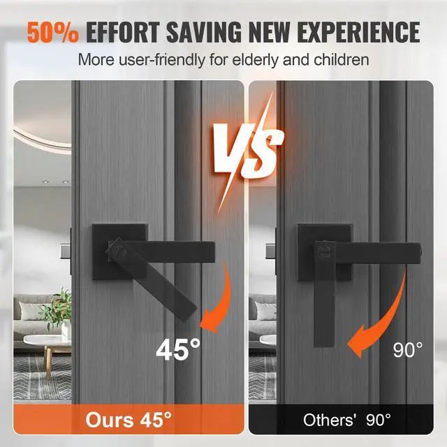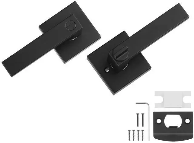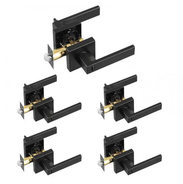 Privacy Door Handle 5PCS Matte Black Square Door Lever Interior Reversible Lever Universal Privacy Door Handle Reversible Design Effortless Installation Effortless 45-Degree Turn Matte Black Finish Keyless Unlocking Latch Backplate Adjustment: 2-3/8" to 2-3/4"60mm/70mm switchable,