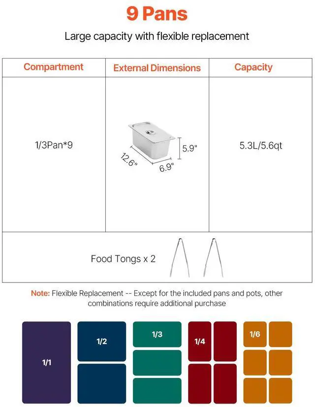 Number of Compartments: 1*1/3 Pan x 9