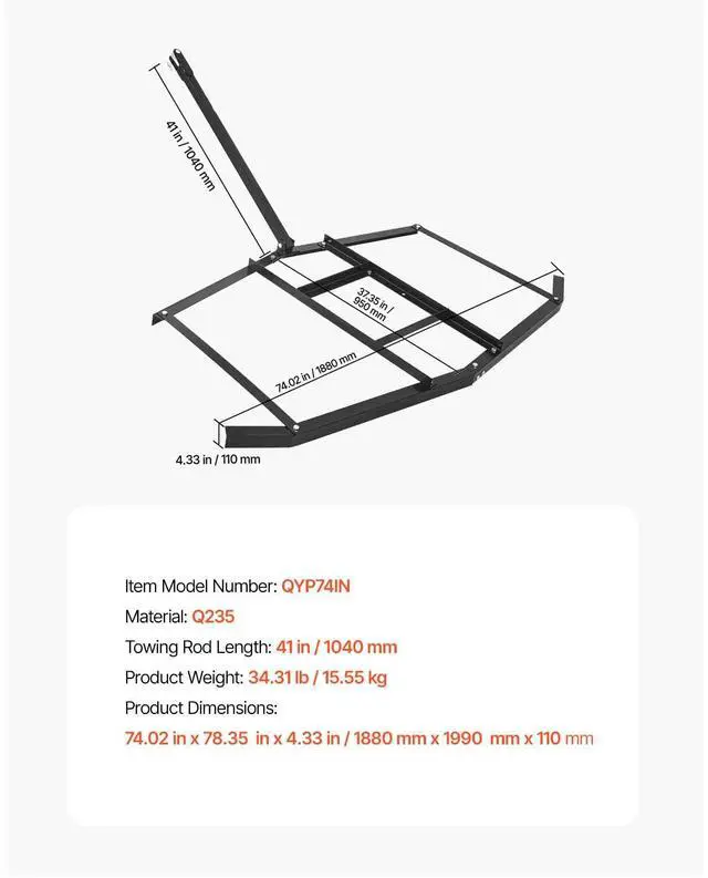 Drag Harrow 74" Width Tow Behind Drag Harrow Steel Gravel Grader ATV UTV Built to Last Easy Connection Powerful Leveling Versatile for Any Task Sturdy Construction Wide-Scale Farming Item