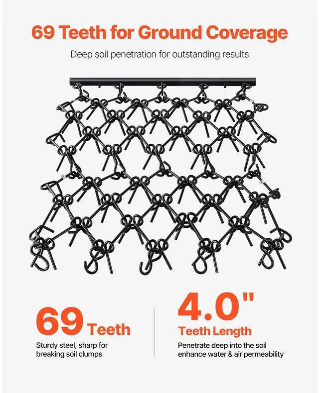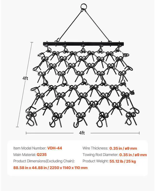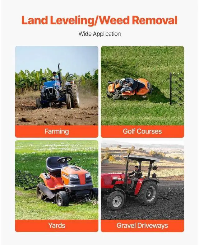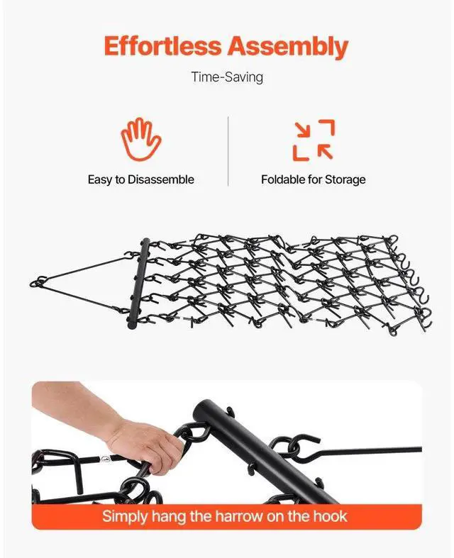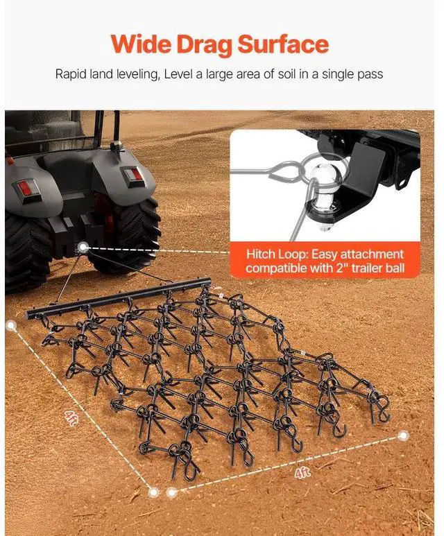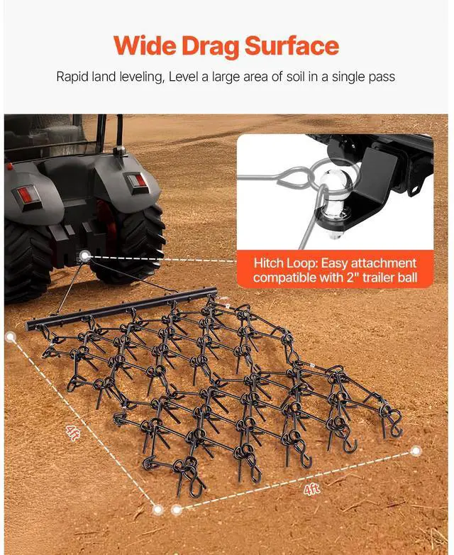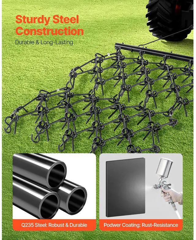 Drag Harrow 7 x 3.7 ft Chain Harrow ATV Lawn Rake for Landscape Leveling Heavy-Duty Design Excellent Farming Performance Wide Coverage Easy Assembly Wide Application Multi-Functional Use Number of