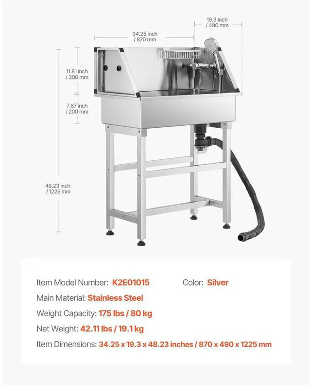 34 inch Dog Grooming Bath Tub Stainless Steel w Faucet for Pets Adjustable Feet Multifunctional Shower Area Stainless Steel Material Simple Installation Adjustable Support Reliable Edges