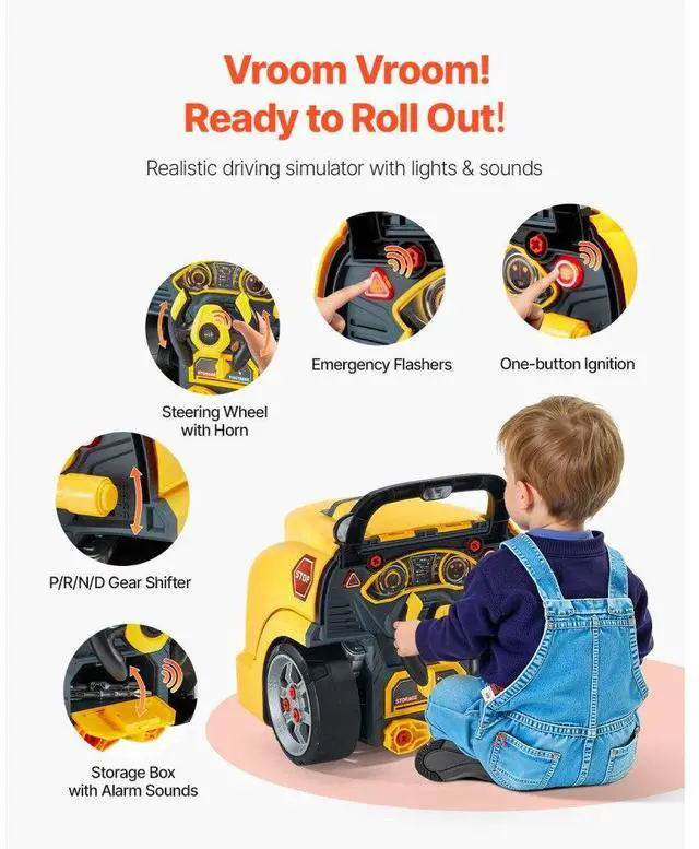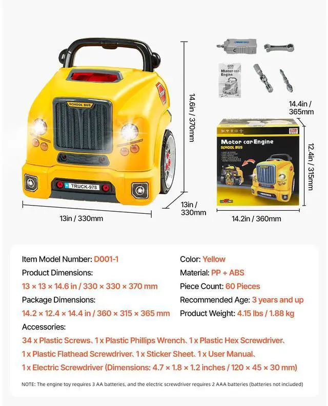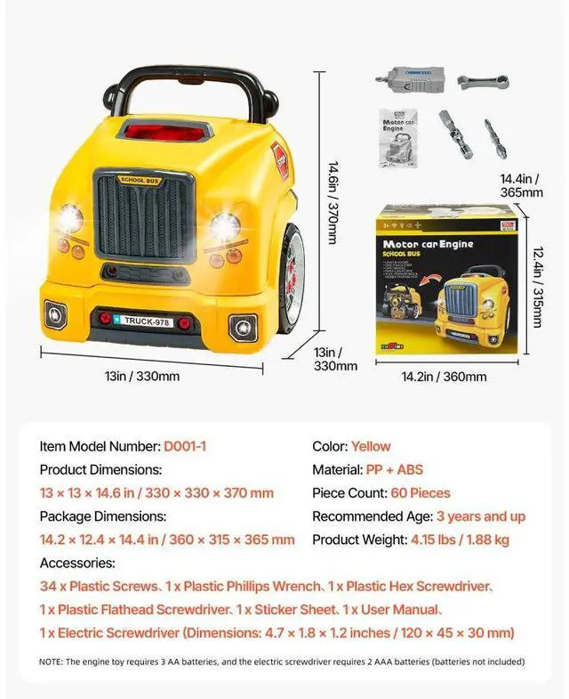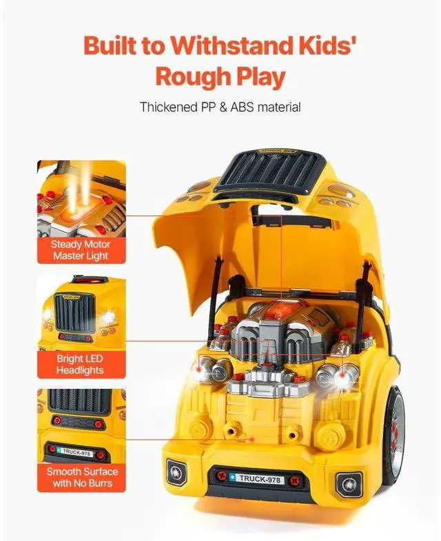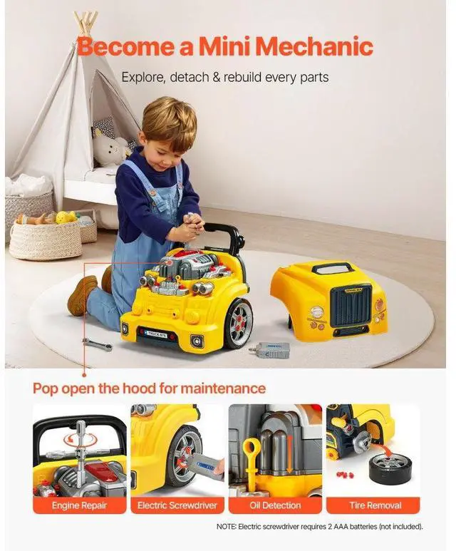 VEVOR Engine Toy Kids Mechanic Car Repair Set with Removable Parts Yellow Explore the Fun of Engine Repair Realistic Repair Play Drive Like a Pro Rich Sound & Light Interaction Ideal Gift for Kids Realistic Electric Screwdriver