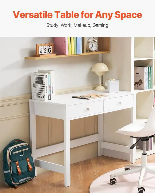 VEVOR Small Desk with Drawers, Kids Desk for Bedroom, Modern Simple Study Table for Drawing, Reading, Writing, Rectangle MDF Furniture Study Storage Table for Home, Office, White Simple and Stylish Design Sturdy and Durable Ample Storage Space Easy to Clean Versatile Functionality Easy Assembly