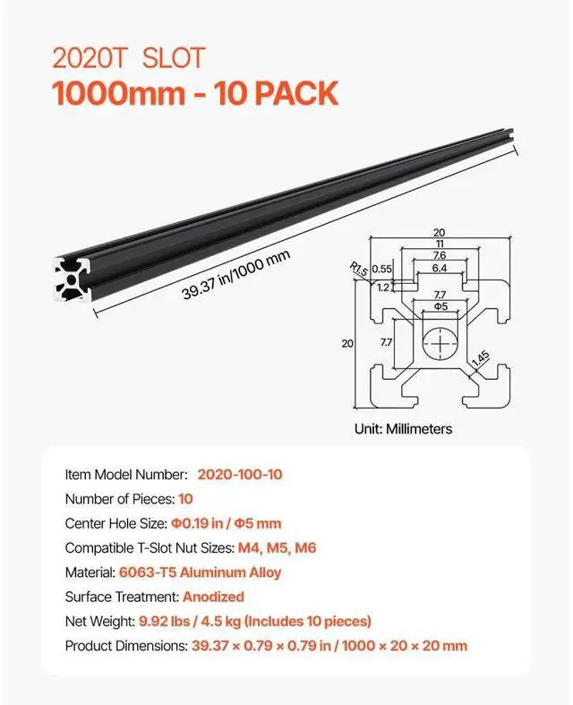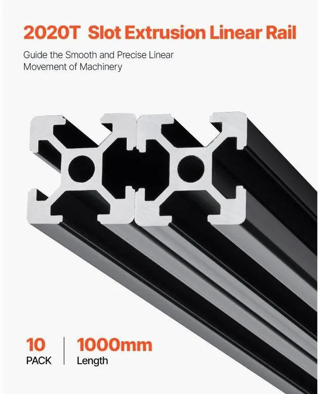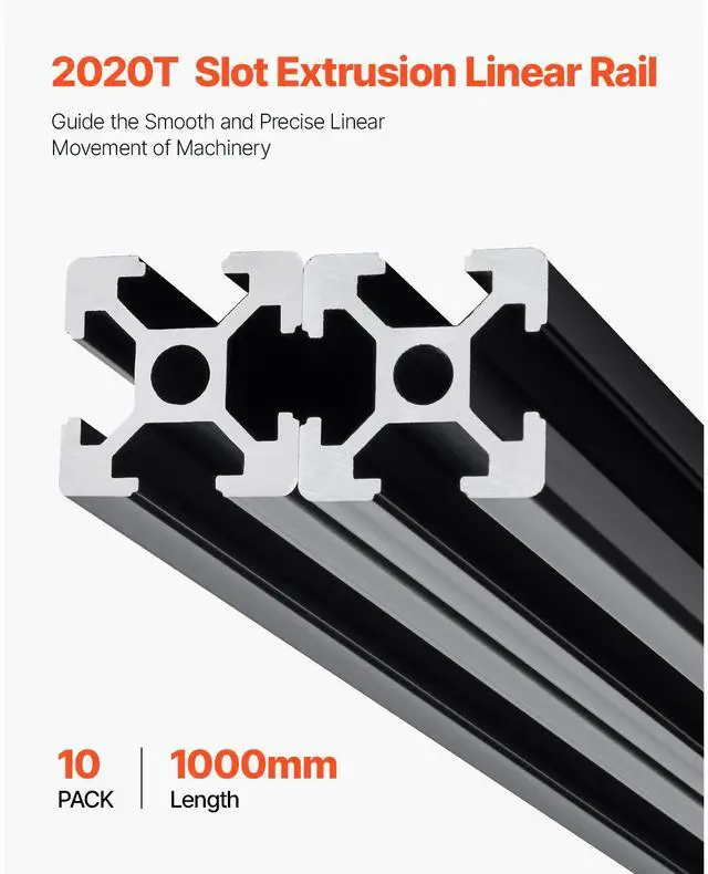10PCS 39.4 in (1000mm) T Slot 2020 Aluminum Extrusion Anodized Linear Rail Modular Design Excellent Corrosion Resistance Enhanced Stability High Compatibility Easy Installation & Connection Reduced Wear & Tear Number of