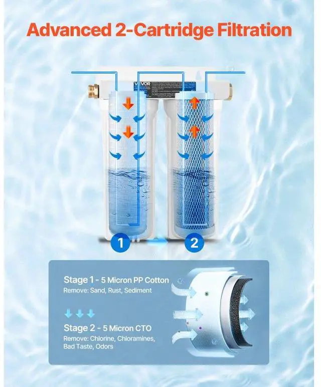 RV Water Filter System 2-Cartridge Water Filtration for Campers RVs Boats RV Water Filter 2 Cartridges No Clogging Reliable Quality Easy Operation Usage Tips