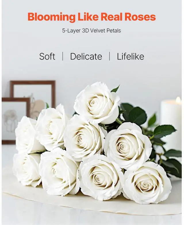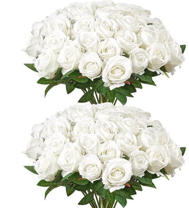 60 Pcs White Roses Artificial Flowers Realistic Bouquet for Xmas Home Decor Ideal Flower Alternative Realistic 3D Design DIY-Friendly Easy to Clean & Maintain Create a Romantic Atmosphere Long-Lasting Color Single Stem Dimensions: 3.9 x 3.9 x 20.1 inch / 100 x 100 x 510 mm, Type: Rose, Single
