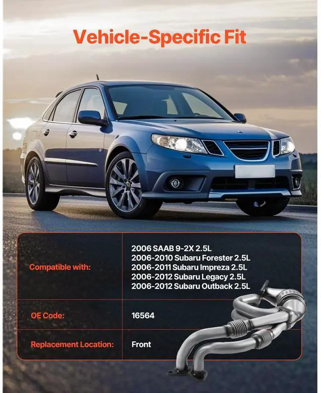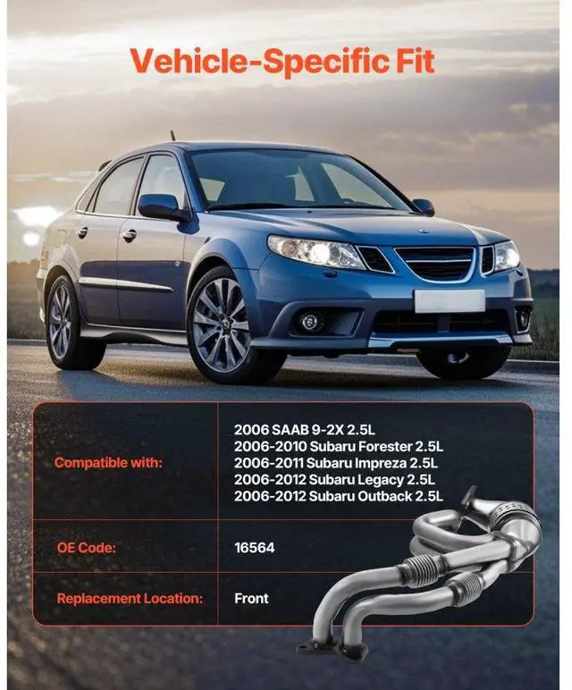 Catalytic Converter Compatible with Subaru SAAB 9-2X 2.5L H4 Front High Flow OBD III Compliance Vehicle-Specific Model Efficient Purification Durable and Sturdy Support for Driving High Efficiency & Clean