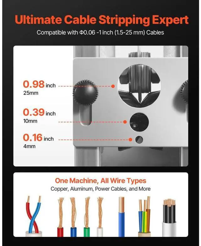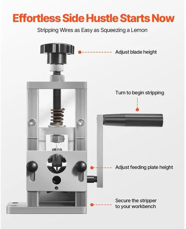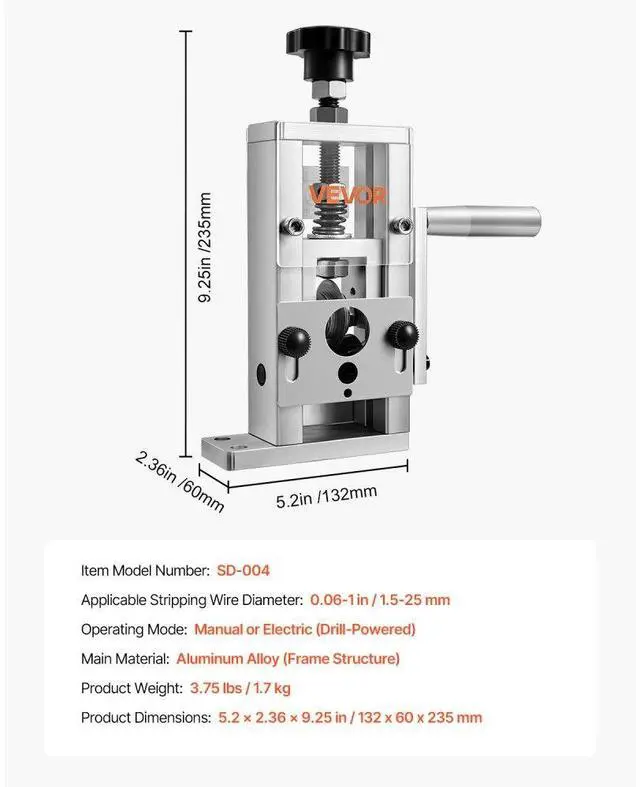 Manual Wire Stripper Stripping Machine 0.06 -1 in Hand Crank or Drill Powered Ideal for Small Batch Jobs Superior Hardness and Durability Efficient Wire Stripping Precision Adjustment Easy to Carry & Store Built to Last Applicable Stripping