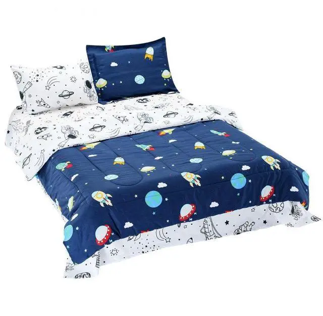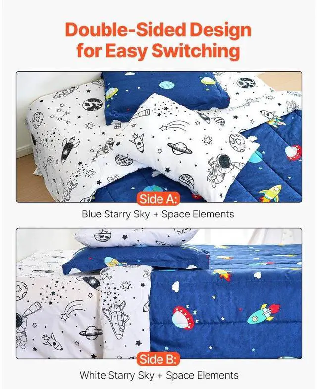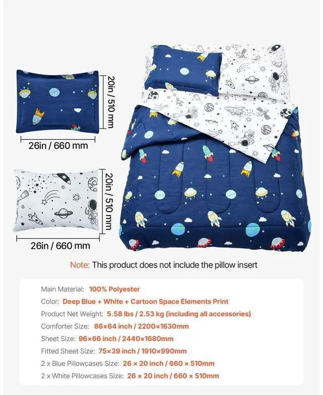 VEVOR Kids Comforter Set 5 Pieces Twin Bedding Set for Kid & Teen Space Printed One-stop Set Comfortable Fabric High-quality Printing Double-sided Design Ideal Room Match Easy to Clean & Maintain Fitted