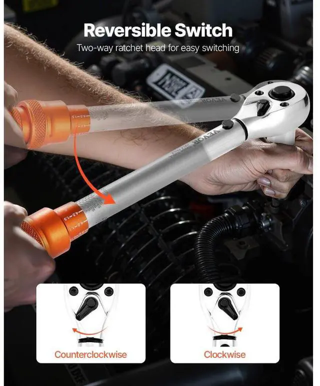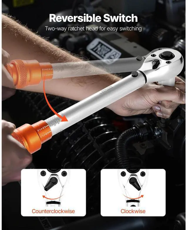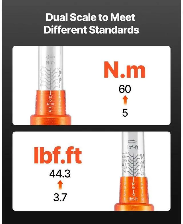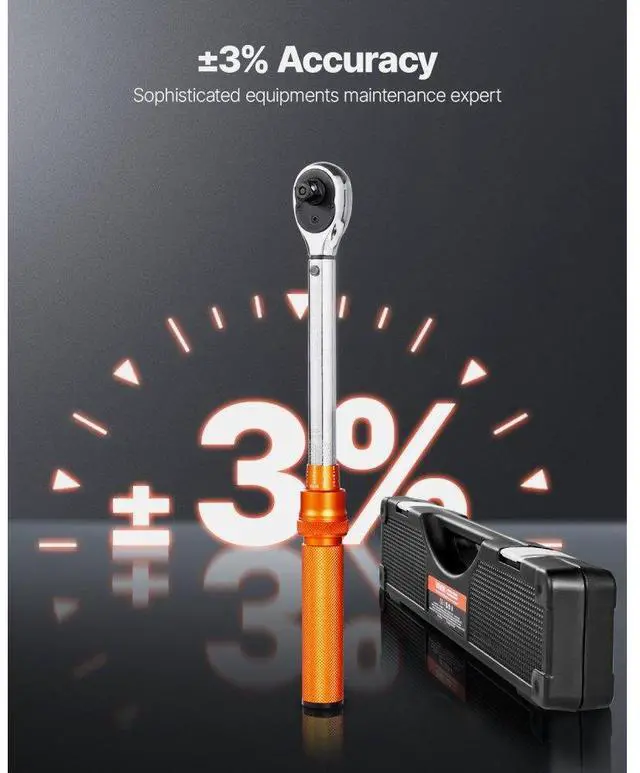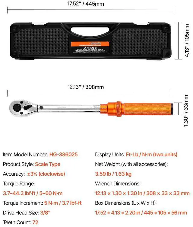 Click Torque Wrench Set 3/8Inch Drive 5-60 N. m / 3.7 - 44.3 lbf. ft Dual-direction ±3% High Precision Suitable for Various Work Environments Precise Readings Automatic Notification Portable Tool Case 72-Tooth