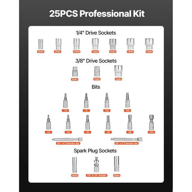 Click Torque Wrench Set 3/8Inch Drive 5-60 N. m / 3.7 - 44.3 lbf. ft Dual-direction ±3% High Precision Suitable for Various Work Environments Precise Readings Automatic Notification Portable Tool Case 72-Tooth