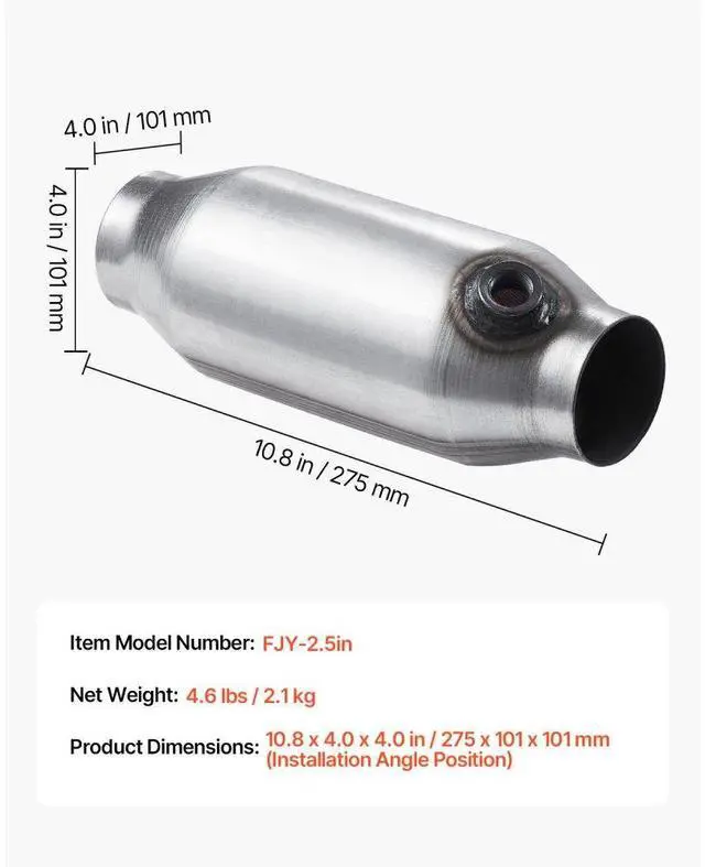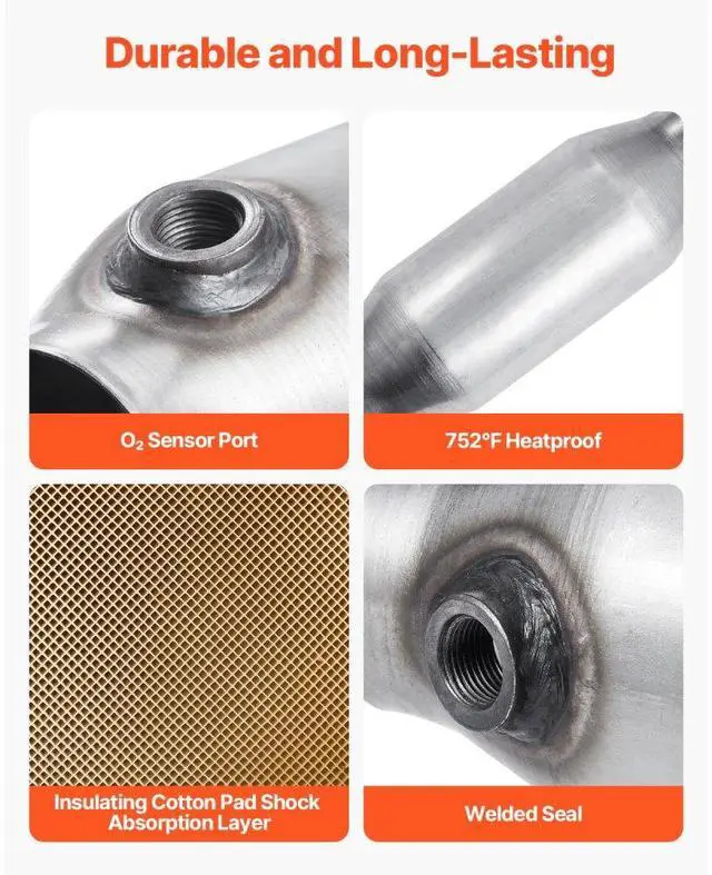 Universal Catalytic Converter 2.5 Inch Inlet and Outlet 2 Pack with O2 Port OBD III Compliance Universal Model Efficient Purification Durable and Sturdy Support for Driving High Efficiency & Clean