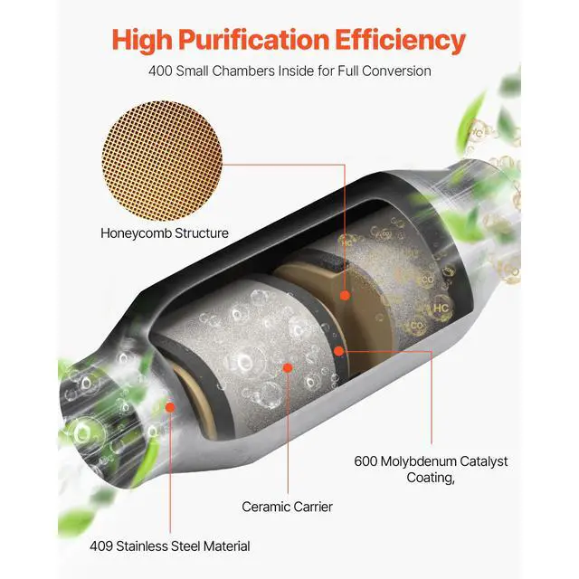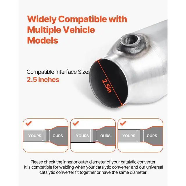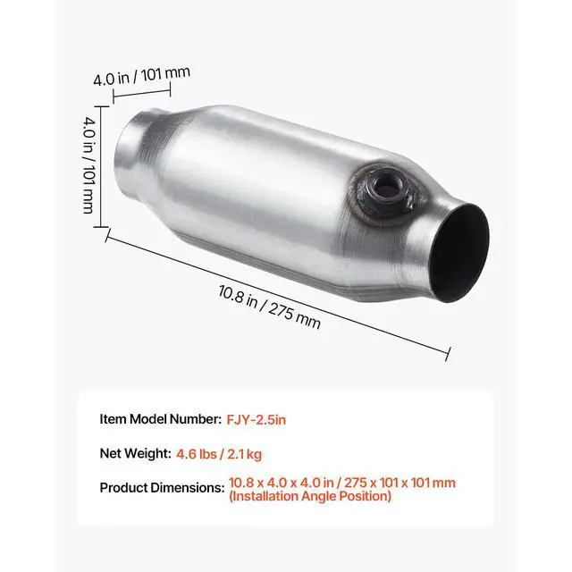 Universal Catalytic Converter 2.5 Inch Inlet and Outlet 2 Pack with O2 Port OBD III Compliance Universal Model Efficient Purification Durable and Sturdy Support for Driving High Efficiency & Clean