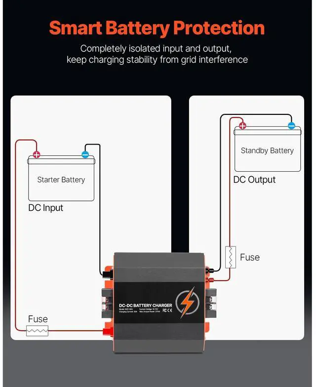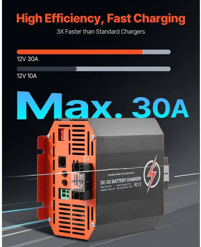 12V 30A DC to DC Charger Battery Charger 375W for Lead-Acid and Lithium AGM GEL Efficient Charging Comprehensive Protection Reliable Performance Revive Resting Batteries Battery Assistant Easy Monitoring