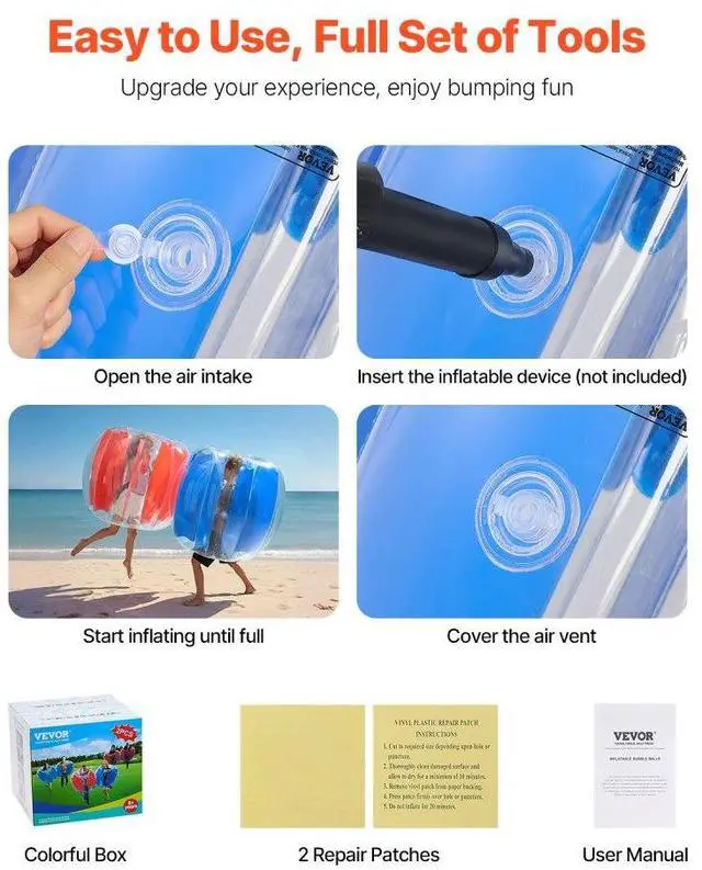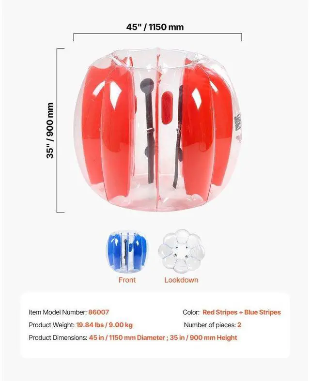 2-Pack 4FT/ 1.2M Inflatable Bumper Balls PVC Body Sumo Zorb Ball Outdoor Game Multifunctional Durable Material Multiple Size Options Easy to Inflate Wide Applications Easy to