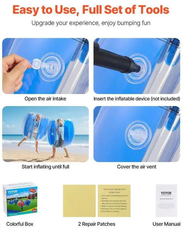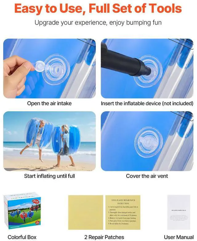 • 2-Pack 3FT/0.9M Inflatable Bumper Balls PVC Body Sumo Zorb Ball Outdoor Game