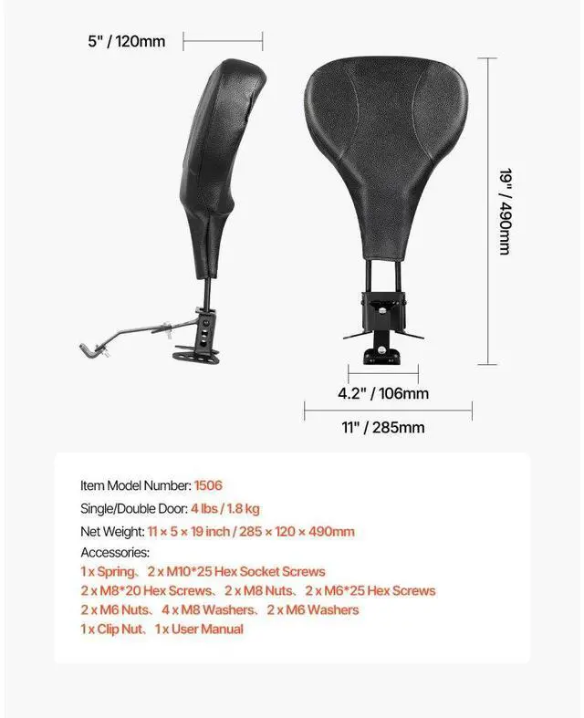 H): 11 x 5 x 19 inch / 285 x 120 x 490mm, Backrest