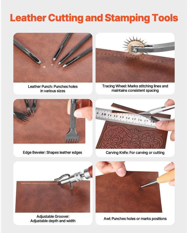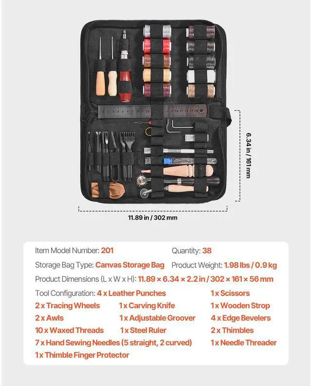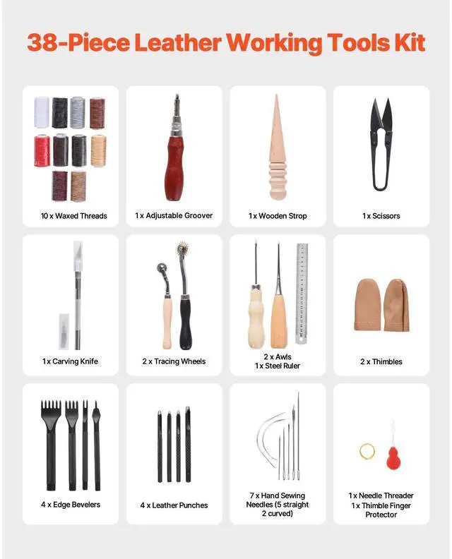 Leather Working Tools Kit 38 PCS Engraving Punching Stamping Sewing Tools Beginner-Friendly Kit Flexible Options Easy to Use High Quality Ideal Gift Includes Storage Bag Item