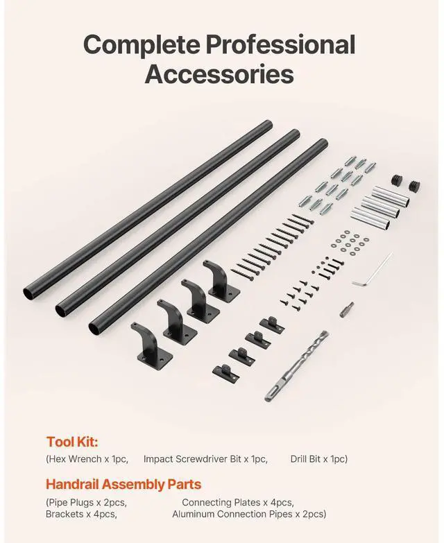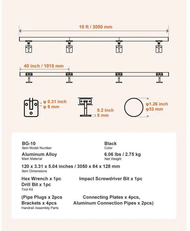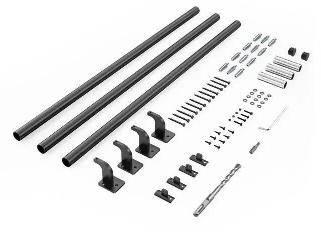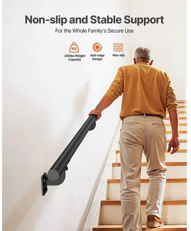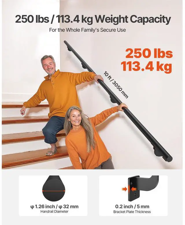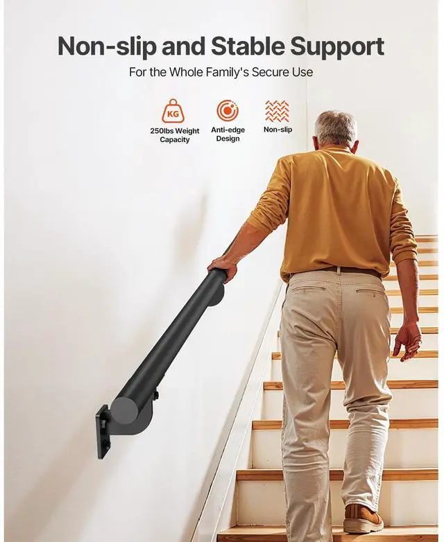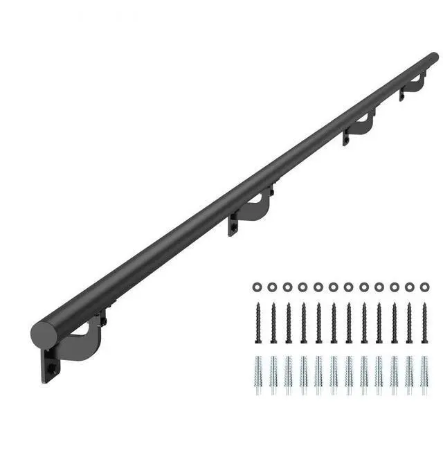 10ft Wall Mounted Stair Handrail Black Aluminum Indoor Outdoor Railing Carbon Steel Bracket Premium Aluminum Material Pipe Plugs Easy Assembly Reinforced Brackets User-friendly