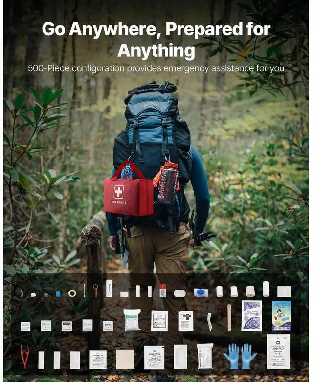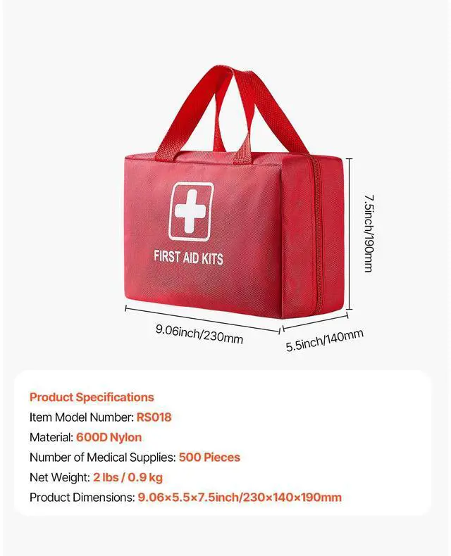 First Aid Kit 500 Pieces Large Survival Bag Emergency Medical Supplies Home Car Compact & Portable First Aid Kit Complete Medical Supplies Smart Organizational Compartments Built to Last Thoughtful Design