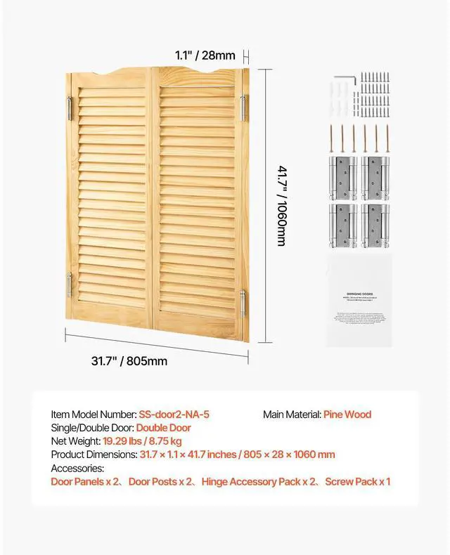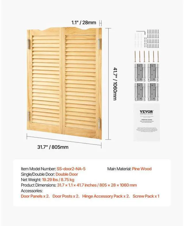 Saloon Swinging Doors 32" x 42" Arched Top Pine Wood with Hinges Log More Flexible Space Quiet Operation Multiple Configurations Versatile Use Easy Installation Complete