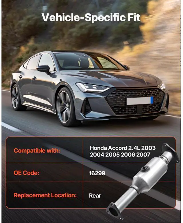 Catalytic Converter Compatible with Honda Accord 2.4L 2003-2007 2.4L L4 Rear OBD III Compliance Vehicle-Specific Model Efficient Purification Durable and Sturdy Support for Driving High Efficiency & Clean