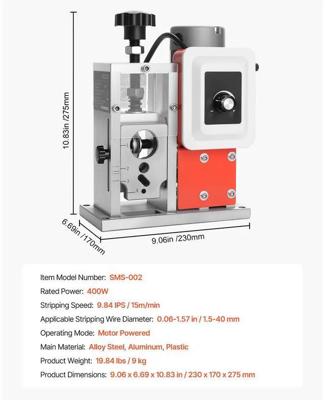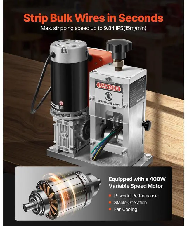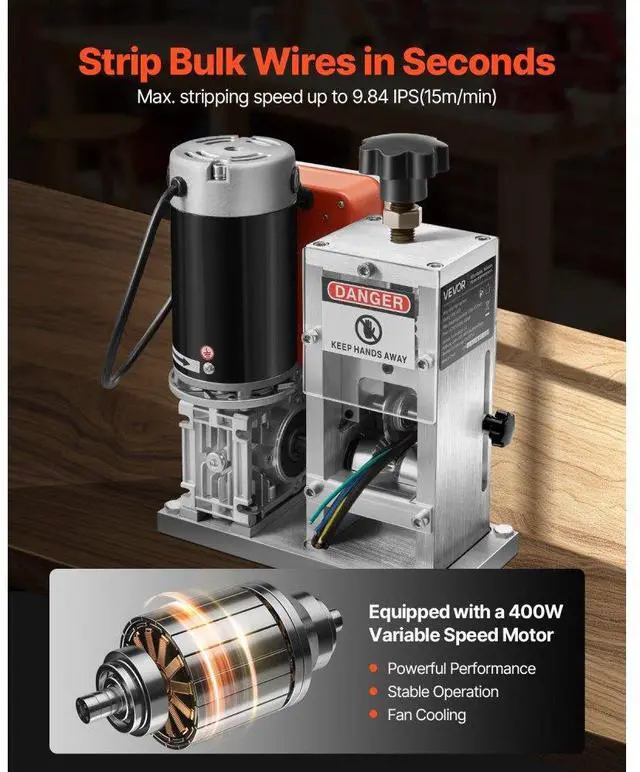 • Electric Automatic Wire Stripper Stripping Machine 0.06-1.57 in 400W 15 m/min