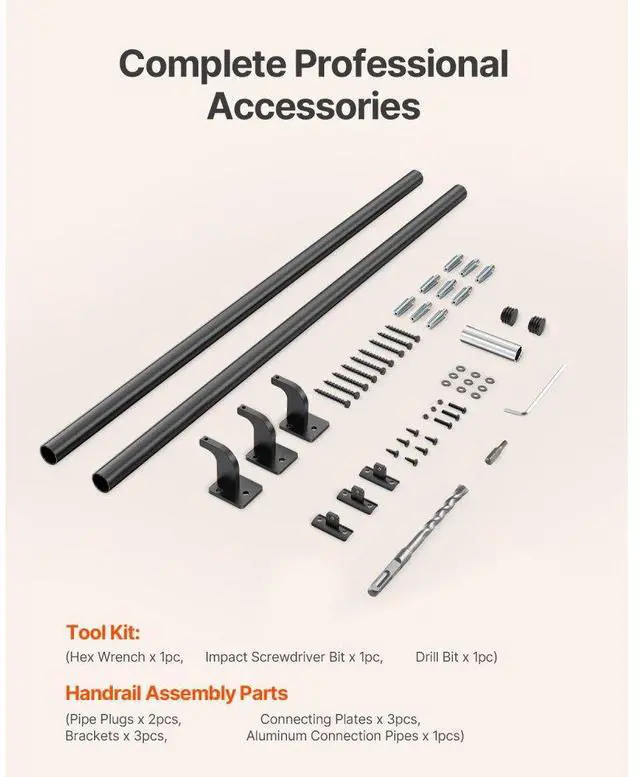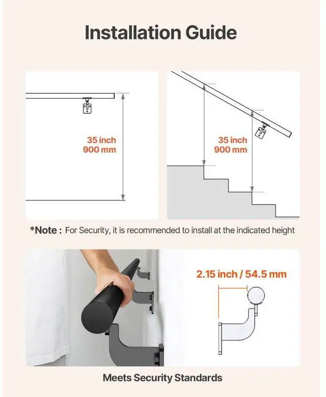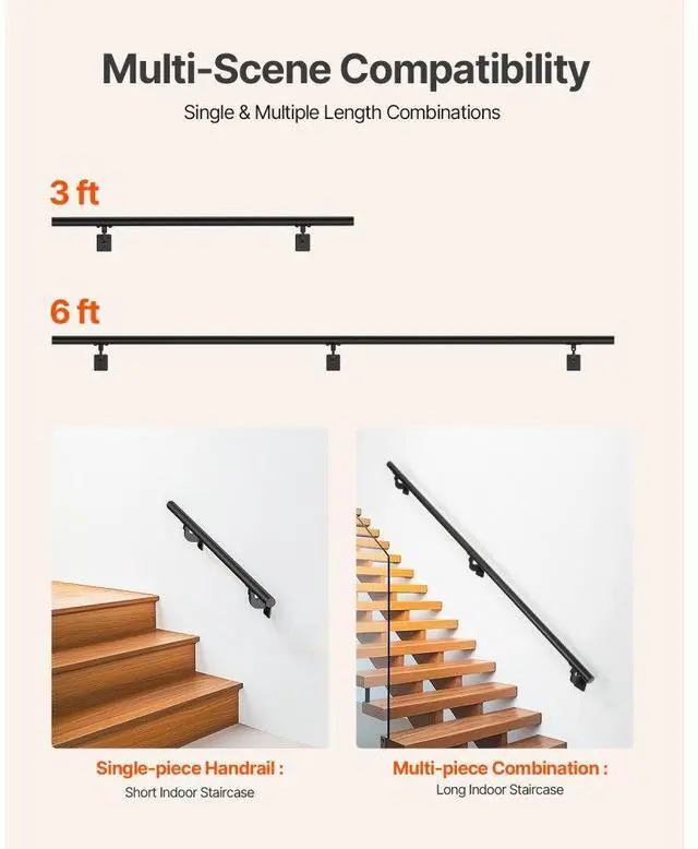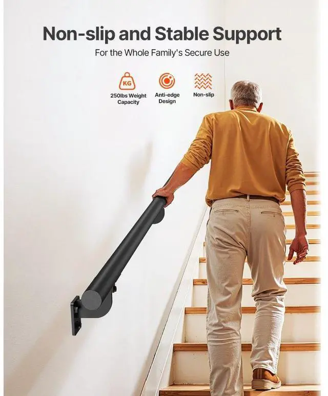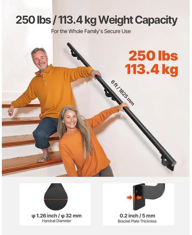 6ft Wall Mounted Stair Handrail Black Aluminum Indoor Outdoor Railing Carbon Steel Bracket Premium Aluminum Material Pipe Plugs Easy Assembly Reinforced Brackets User-friendly
