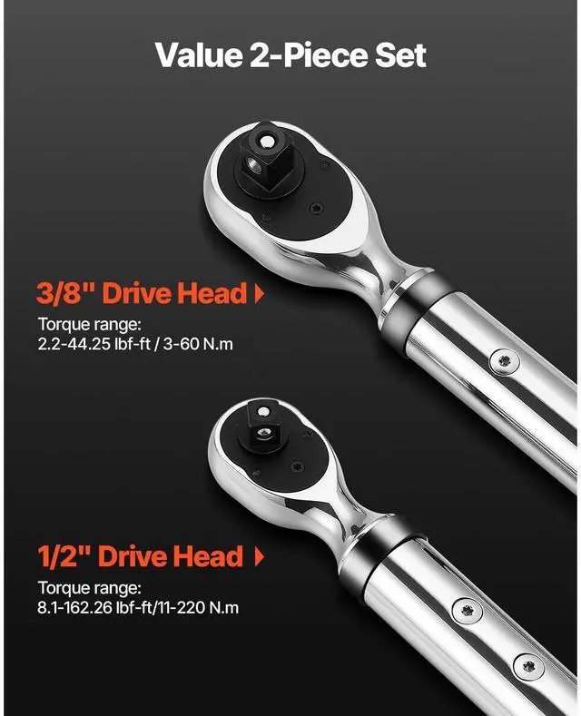 Ratchet Accuracy: ±2% (clockwise), 1/2"Wrench