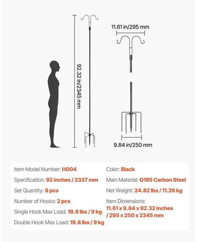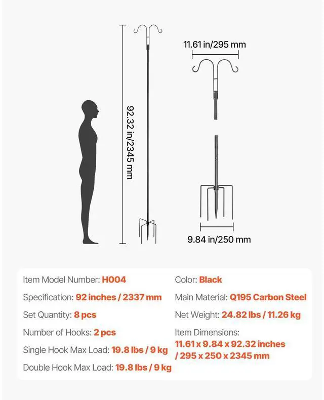 Double Hook Max Load: 19.8 lbs / 9 kg