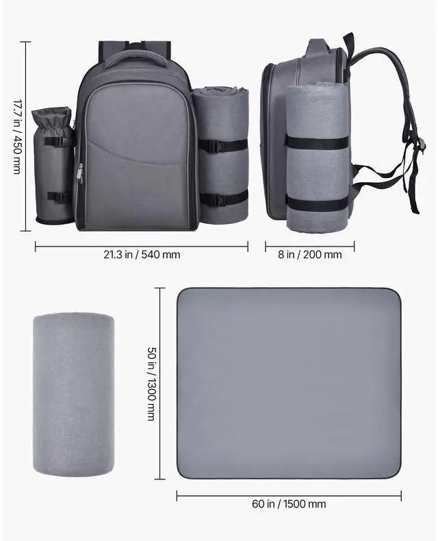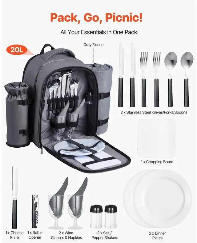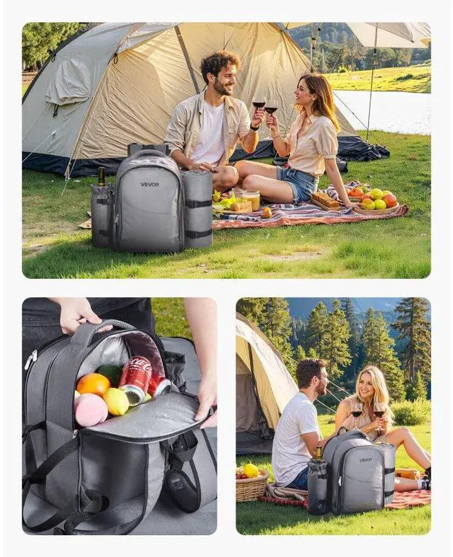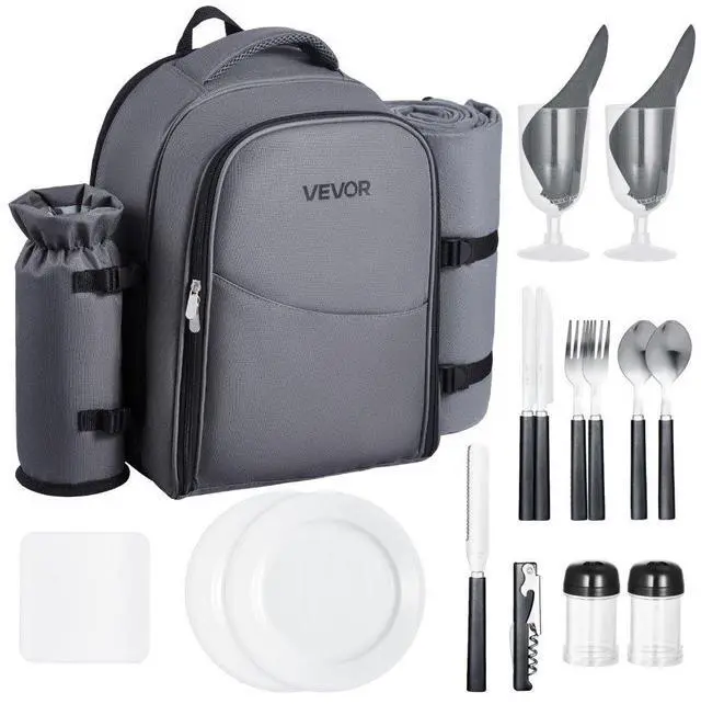 VEVOR Beach Picnic Backpack Bag for 2 Person with Cooler Compartment Grey All-in-One Organization Long-Lasting Freshness Durable & Stylish Comfortable to Carry Versatile for Any Outdoor Adventure Built to Last & Easy to