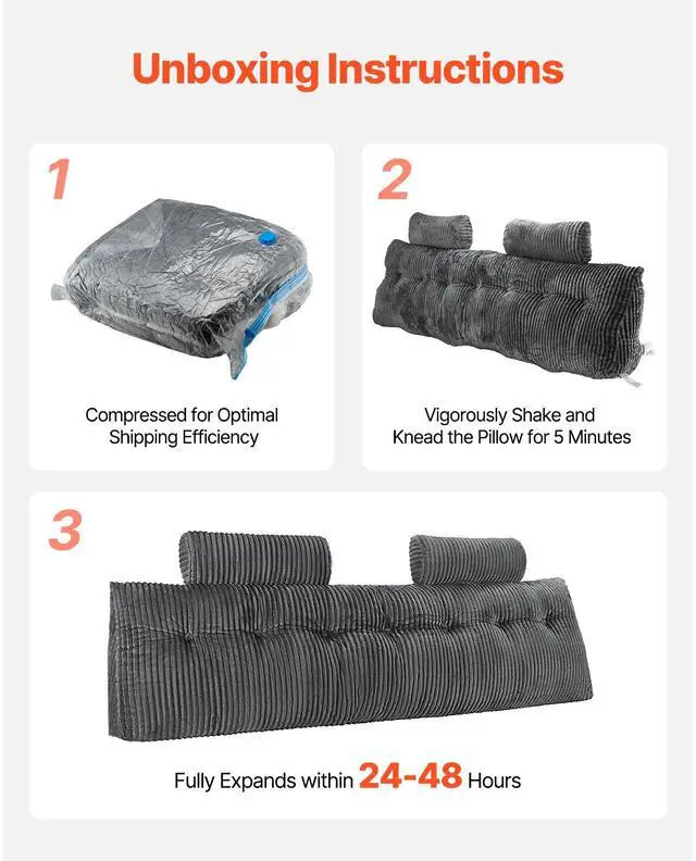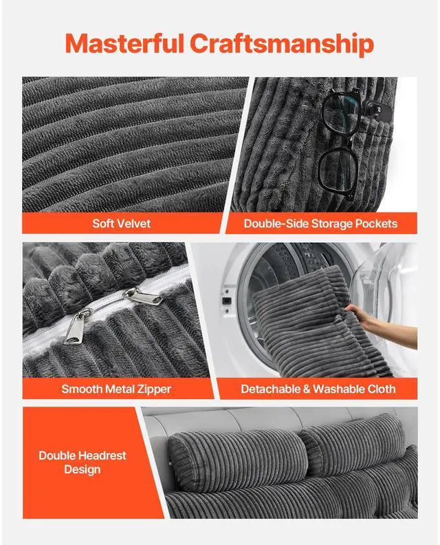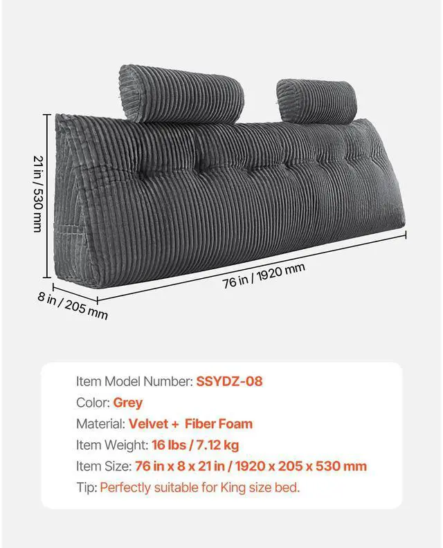 VEVOR Headboard Pillow, King Size Wedge Headboard Pillow with 2 Side Pockets and 2 Headrests, Bed Wedge Pillow with Washable Flannel Cloth, for Reading, Gaming, Resting, Working in Bed, Grey Skin-Friendly Ultra-Soft Velvet Fabric Organized Living at Your Fingertips Versatile Head Pillows Ergonomic Perfection Vacuum-Sealed Convenience Ideal Present Item Size: 76 x 8 x 21 in / 1920 x 205 x 530 mm, Color: Grey, Item