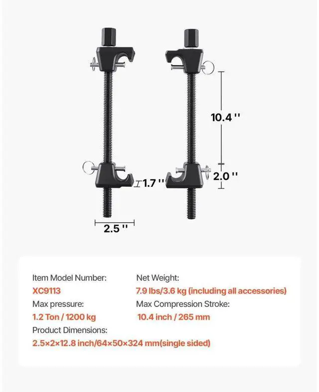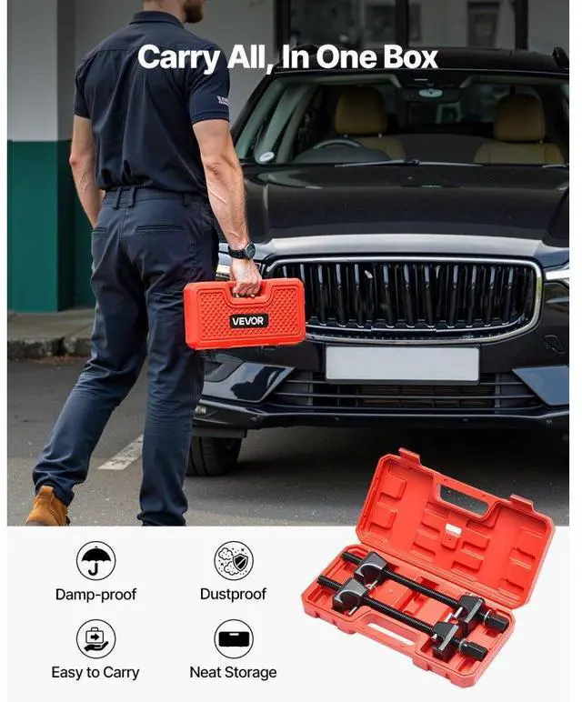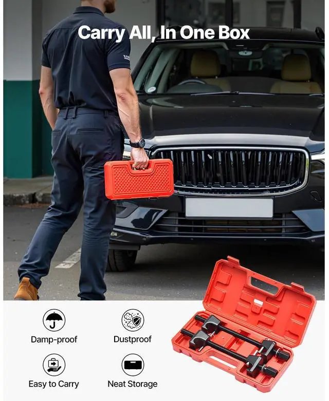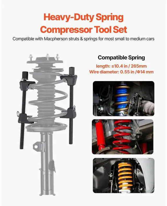 VEVOR Strut Spring Compressor 2 Pcs Coil Spring Compressor Tool 10.4 -Inch Range Applicable Types Socket Operation Secure Fixing Important Notes Sturdy & High Pressure Resistant Waterproof & Dustproof Toolbox Item