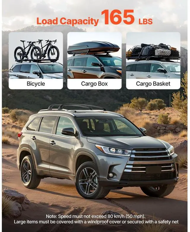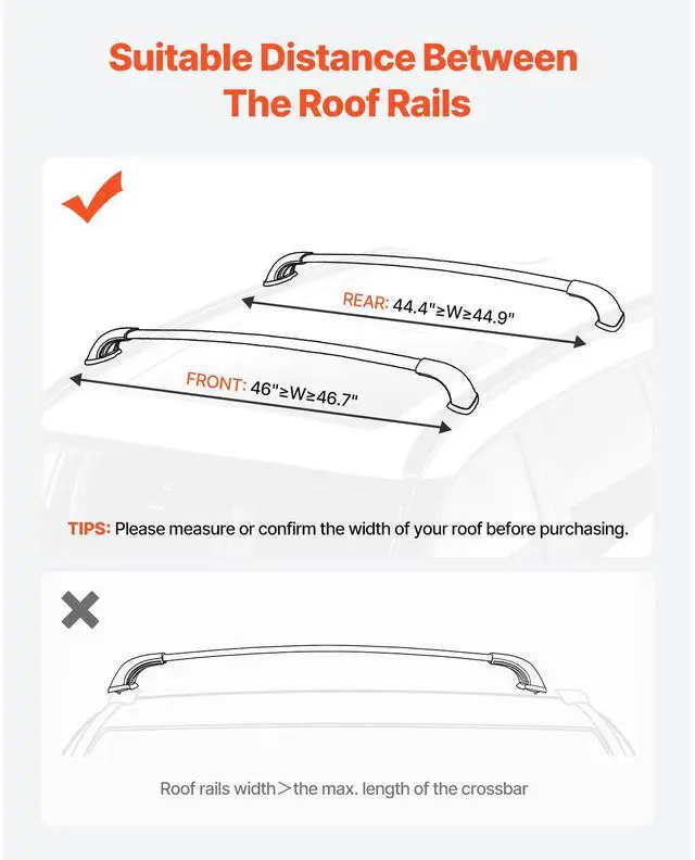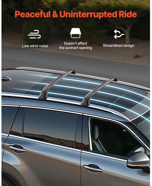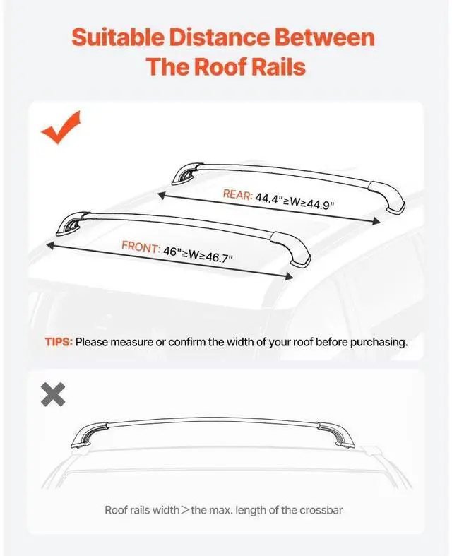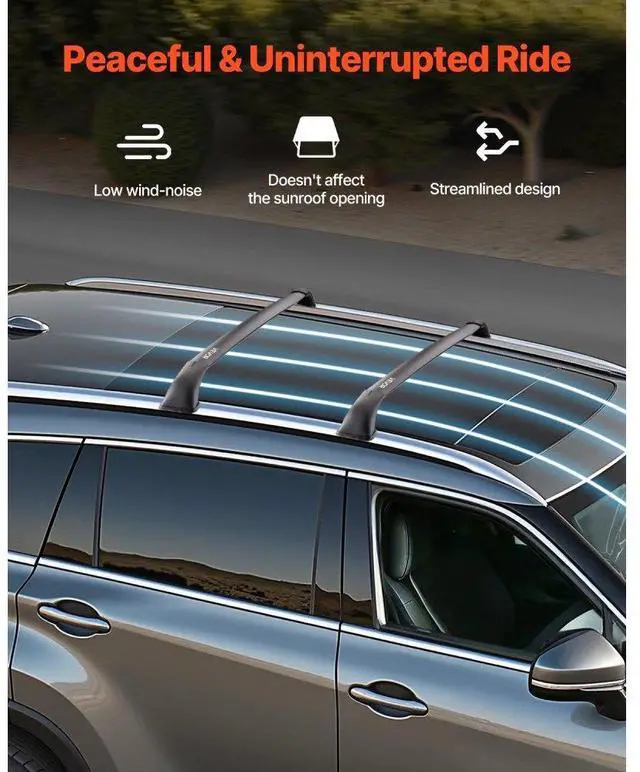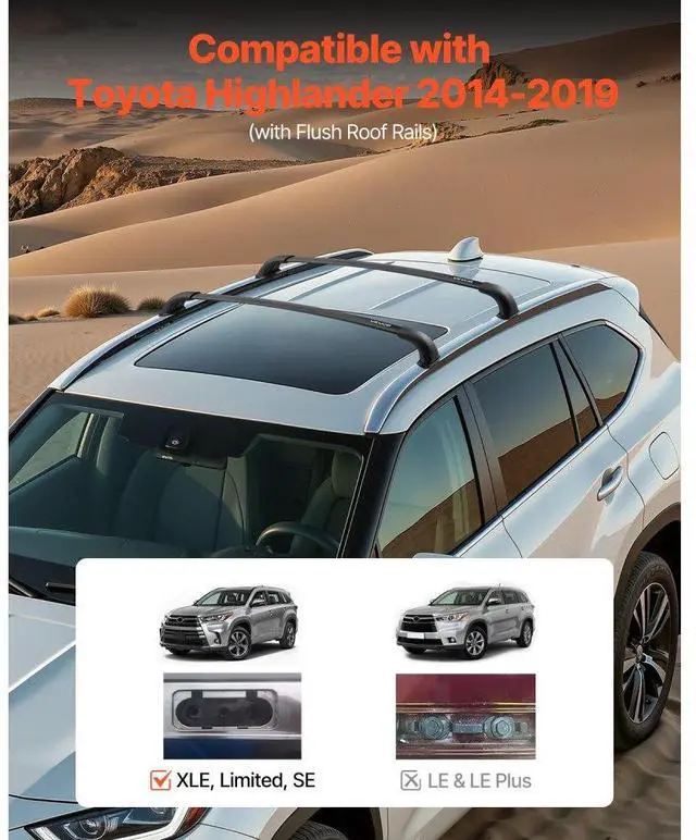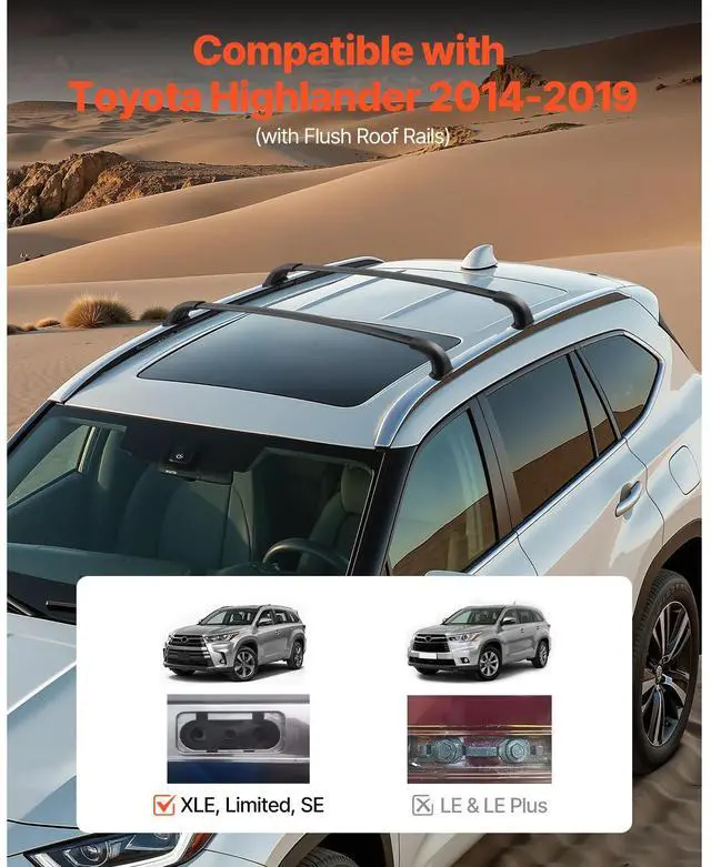 Cross Bars Roof Racks Fit Toyota Highlander with Flush Roof Rails 165lb Capacity Premium Mounting Bracket Robust Aluminum Tubing Secure & Stable Fixation Strong Load Capacity Straightforward Installation Raised Design Rear Cross Bar: 46.5 -47 x 5.1 x 4.7 inch/1181-1194 x 130 x 120 mm, Front