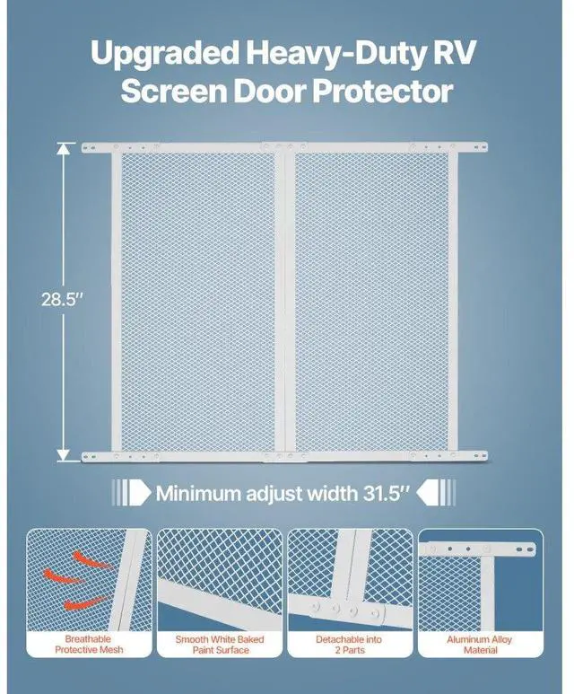 RV Screen Door Protector 28.5 x 31.5 in Door Grille Easy to Install Disassemble Pet-Friendly Enhanced Security Easy to Disassemble Simple Installation Versatile Use Aluminum Alloy