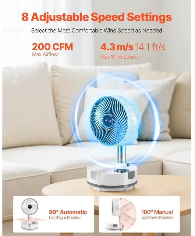 8 inch Foldable Rechargeable Oscillating Fan 3 in 1 Remote 8 Speeds Multi-Functional Rechargeable Fan Strong Wind Power Helps You Sleep Versatile Use Thoughtful