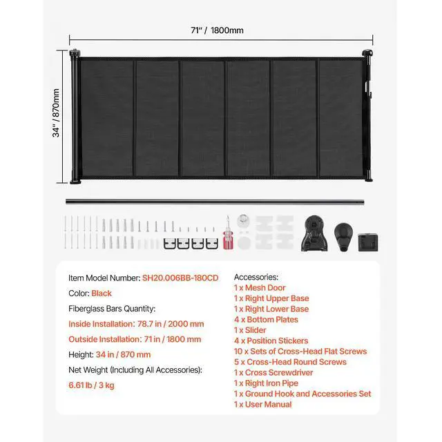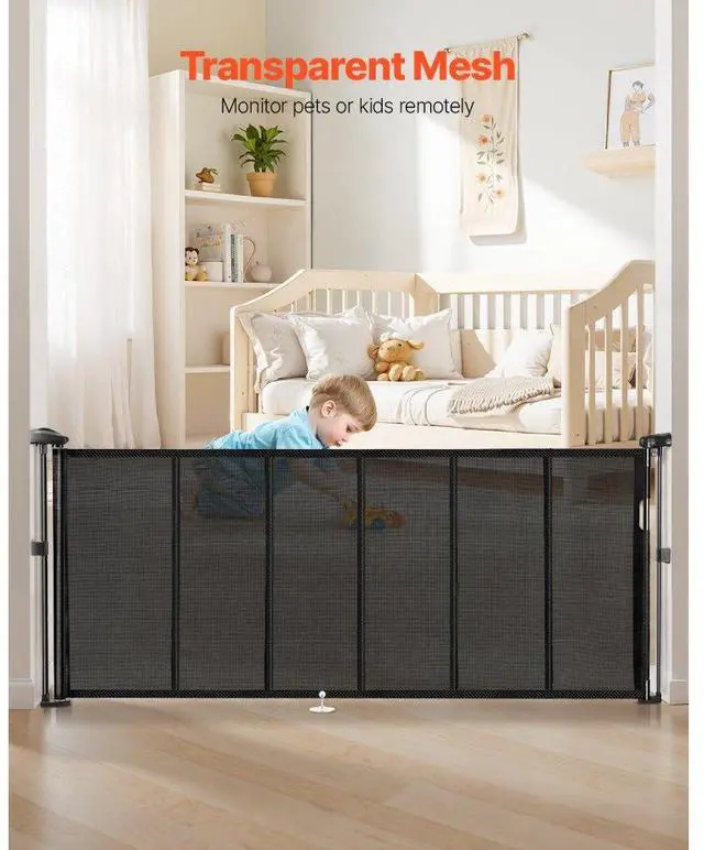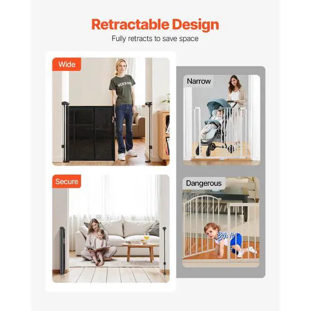 Retractable Baby Gate 34.2 in Tall Extend to 70.87 in Wide for Kids or Pets Black Security First Easy One-Hand Operation Adjustable Installation Retractable Versatility Wide Application High-Strength Structure Net Weight (Including