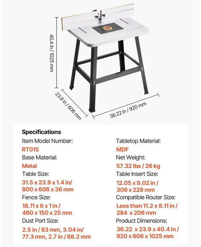 Benchtop Router Table 31.5 in x 23.9 in with Fence MDF Top Dust Collection Port A Sturdy and Reliable Work Platform Selected Premium Materials Effortless Cleanup Simple Assembly Multi-Purpose Use Galvanized Metal