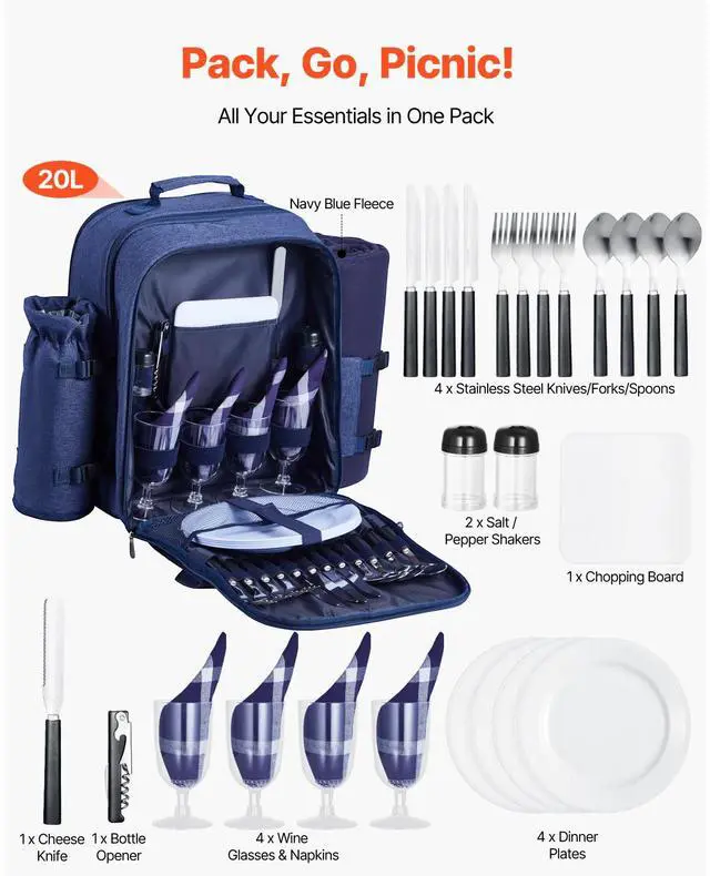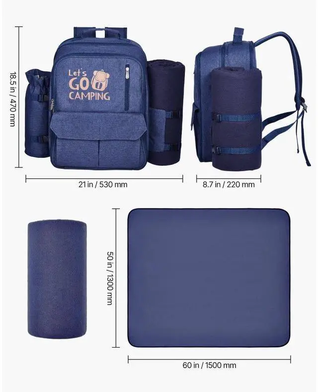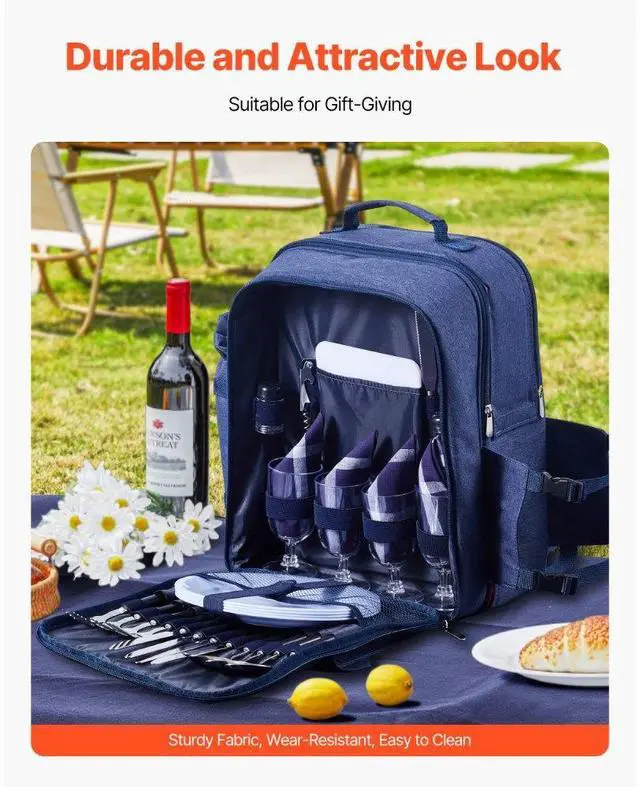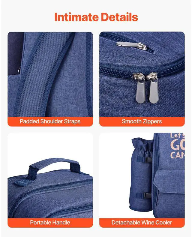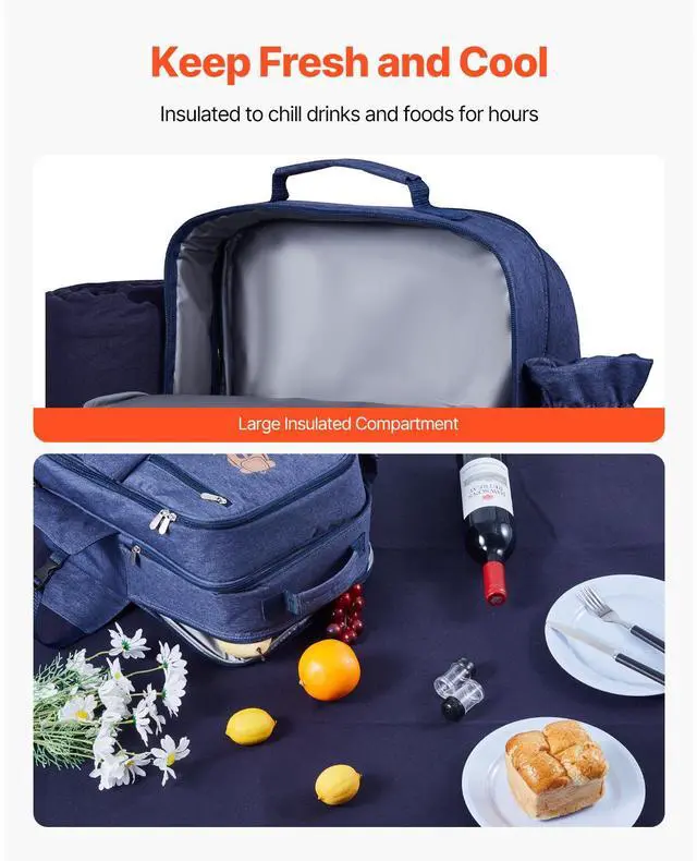 VEVOR Beach Picnic Backpack Bag for 4 Person with Cooler Compartment Navy Blue All-in-One Organization Long-Lasting Freshness Durable & Stylish Comfortable to Carry Versatile for Any Outdoor Adventure Built to Last & Easy to