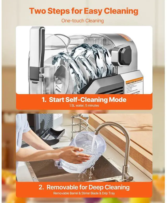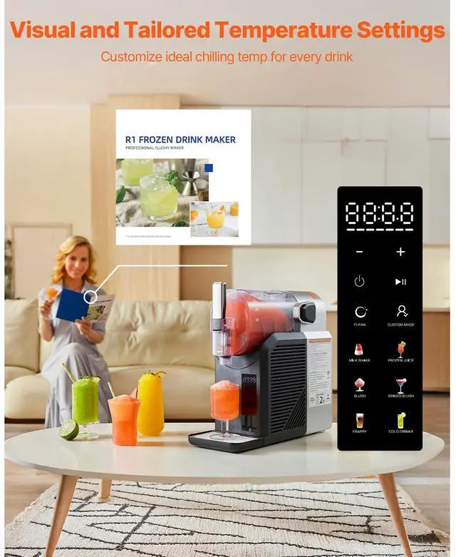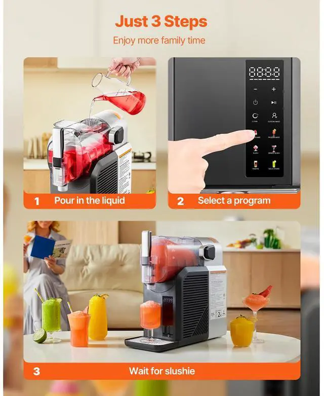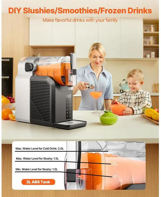 2L Slushy Machine No Ice Needed Frozen Drink Maker 6 Preset Programs for Home Removable Barrel Removable Stirrer Blade Removable Drip Tray Recipe Guide Easy to Clean Slushy Machine for